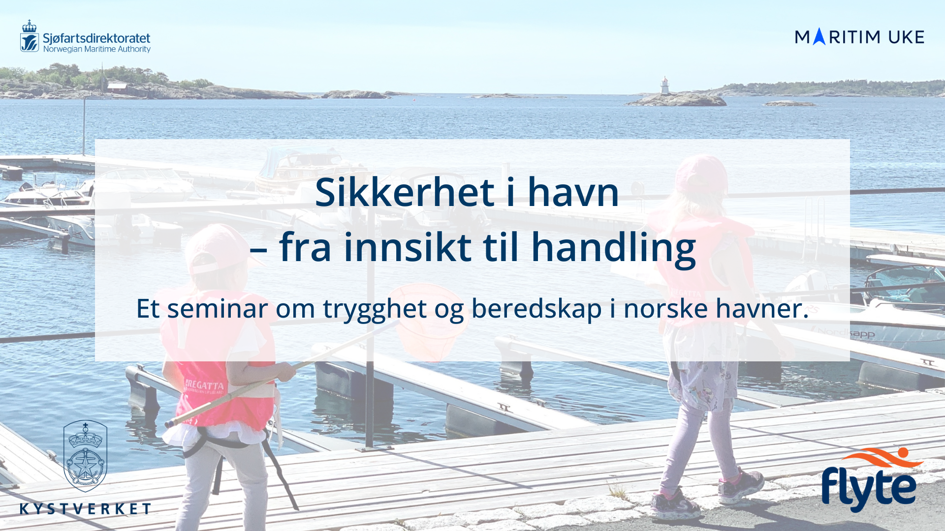 MELD DEG PÅ SEMINAR: Onsdag 3. september inviterer Kystverket, Sjøfartsdirektoratet og organisasjonen Flyte til seminaret Sikkerhet i havn – fra innsikt til handling, under Maritim Uke i Haugesund.