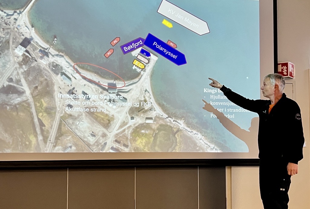 – På Svalbard er det ekstra mange utfordringer. Vi er i Arktis, midt mellom fastlandet og Nordpolen. Kulde, dårlig dekning, store avstander og få ressurser gjør at det er viktig å øve her. Sjøområdene er ofte dårligere kartlagt, og med økende cruisetrafikk og sårbar natur er det økt risiko for at noe kan skje, sier øvingsleder Nils Ove Sollid fra Kystverkets miljøberedskap.
