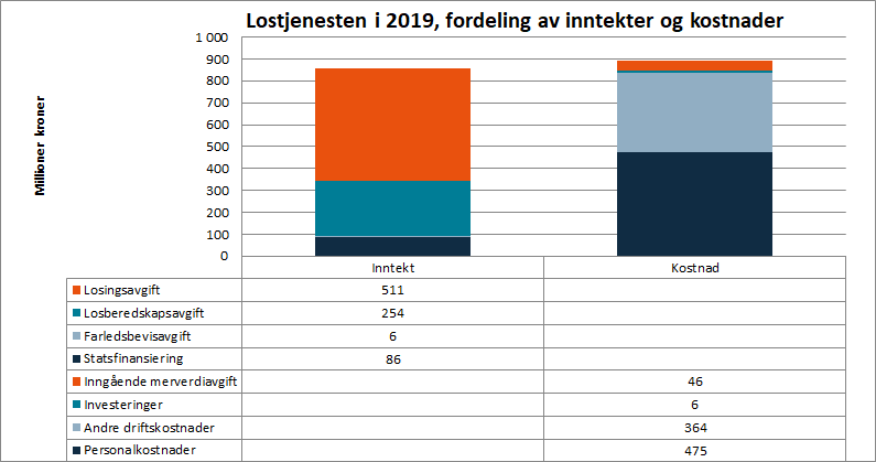 Last ned Inntekter og kostnader i 2019Lostjenestens inntekter og kostnader i 2019.