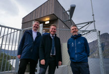 Last ned Markerte nye Kinn sjøtrafikksentraltjenesteFra venstre: sjøsikkerhetsdirektør Arve Dimmen (Kystverket), statssekretær Anders Tyvand (Samferdselsdepartementet), kystdirektør Einar Vik Arset (Kystverket) utenfor Sveneset radarstasjon i Leirgulen.