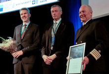 Last ned Fikk æresprisFra venstre: kystdirektør Einar Vik Arset, statssekretær Vidar Ulriksen og losdirektør Erik Blom. Foto: Kystverket