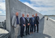 Last ned Fiskerihamnopning på Bømlo1.jpgFrå venstre: Prosjektsjef Torgrim Storstein frå entreprenør Vassbakk & Stol, assisterande kystdirektør Per Jan Osdal, fylkesordførar Vestland fylkeskommune Jon Askeland, ordførar Bømlo kommune Morten Helland og prosjektleiar Terje Andreassen i Vestland fylkeskommune.