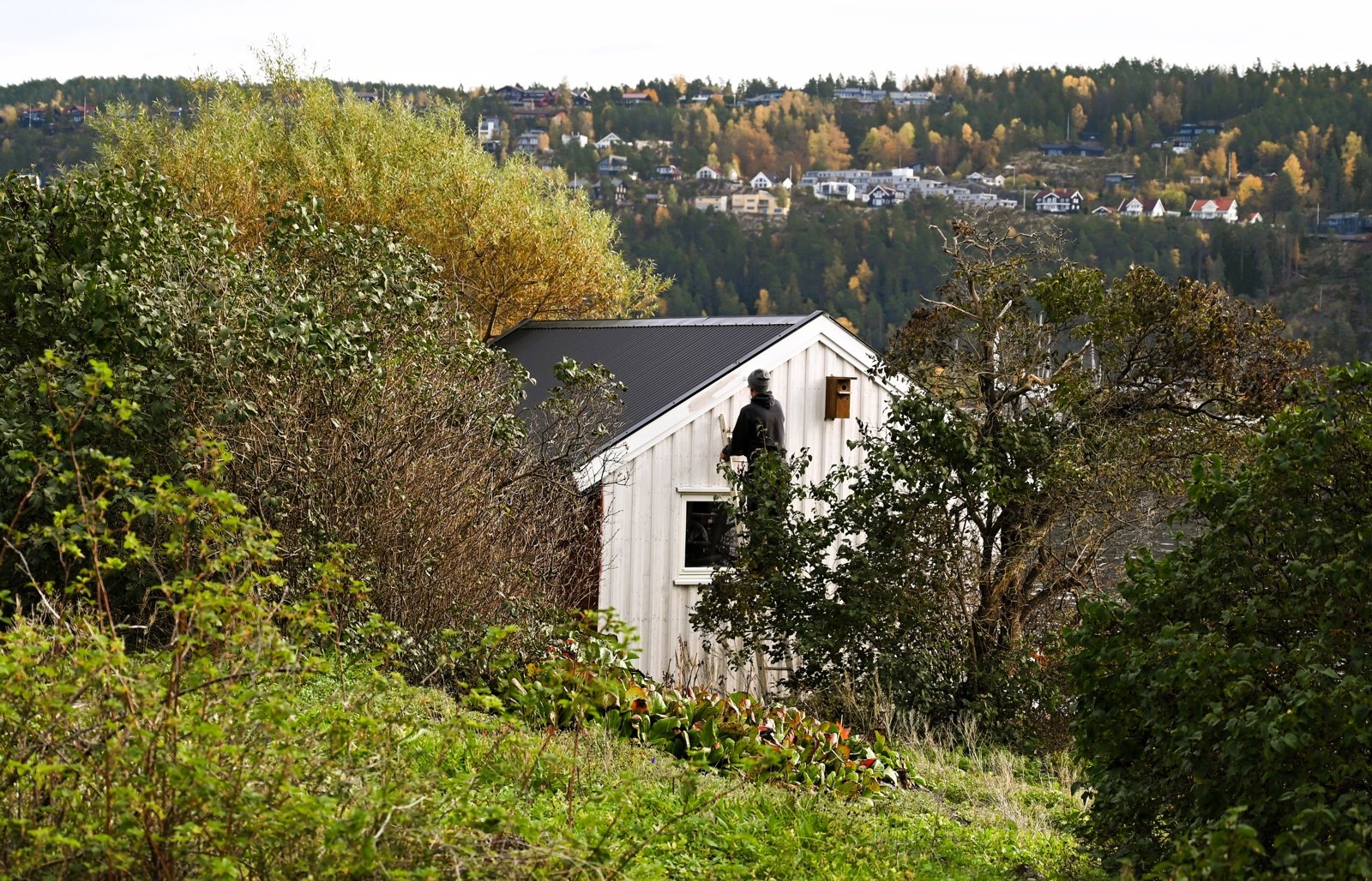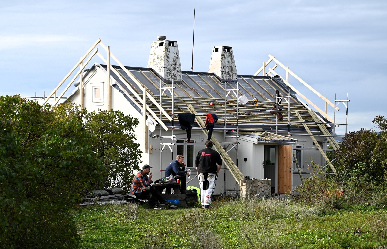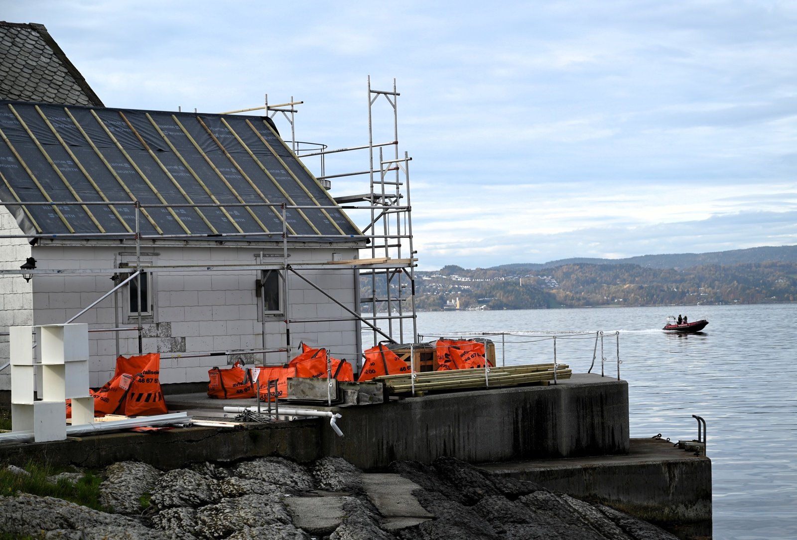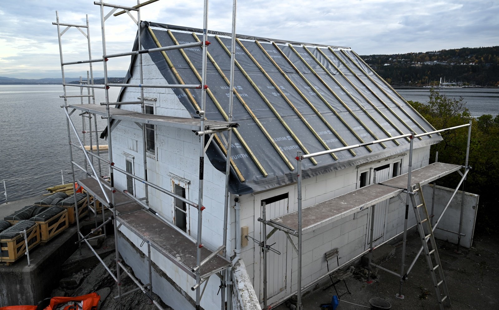 Sletringen fyr: Ny taktekking på naust.