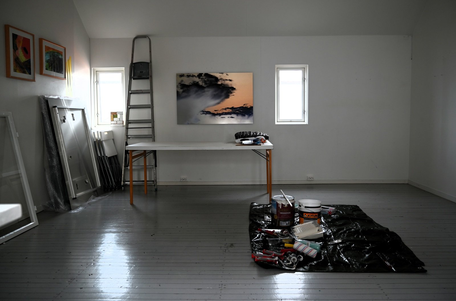 Skrova fyr: Sliping, pussing og maling av vegger og karmer rundt vinduer. Erstatte skadet takplate.
