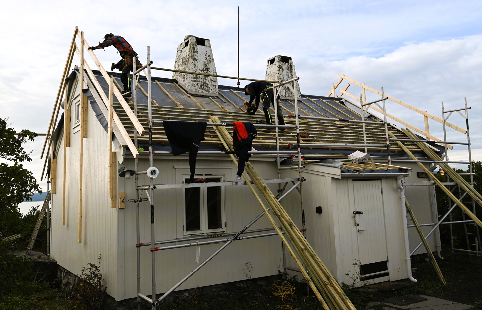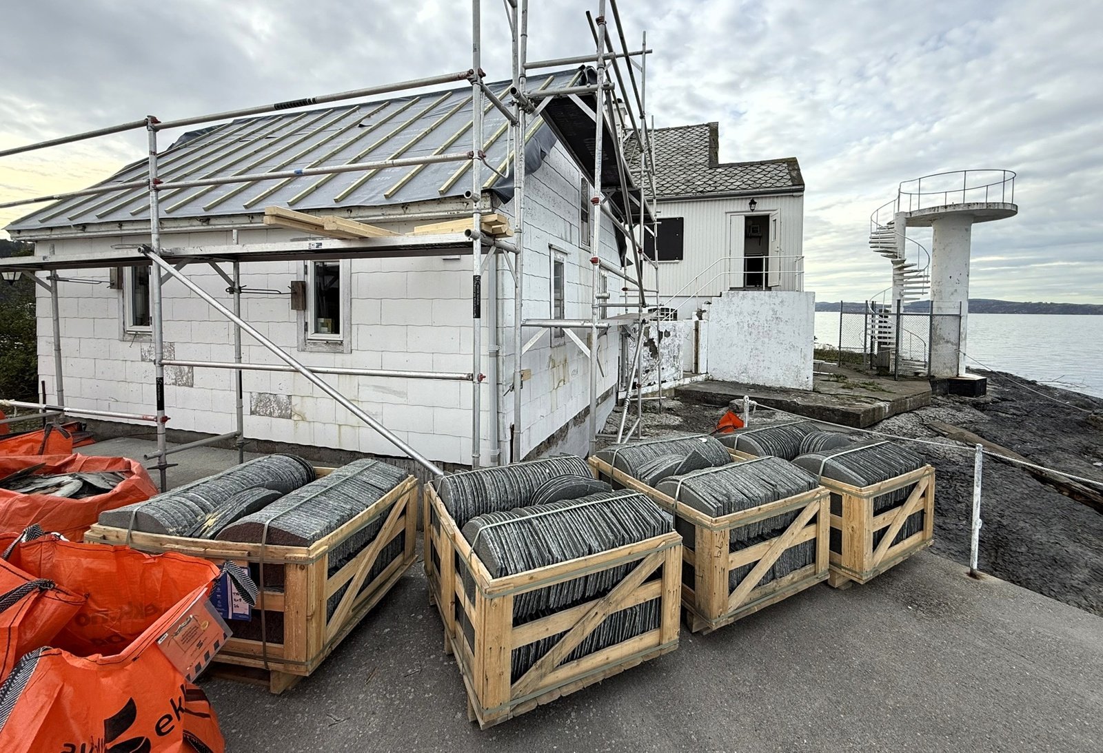 Flatholmen fyr: Omlegging av skifertak på hovedhus, maskinhus grunnet lekkasje.