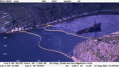 Opptak fra Kystverkets overvåkingsflys overflygning onsdag ettermiddag 11/09/2021.