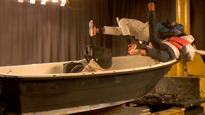 Dukkene som ble brukt i testen skal simulere en vanlig familie på fire, med kroppsvekt på henholdsvis 70 og 35 kilo. Ved hjelp av høyhastighetskameraer får man i testen et brutalt innblikk i hvilke krefter som er i sving. Samtlige av dukkene blir kastet ut av båten.