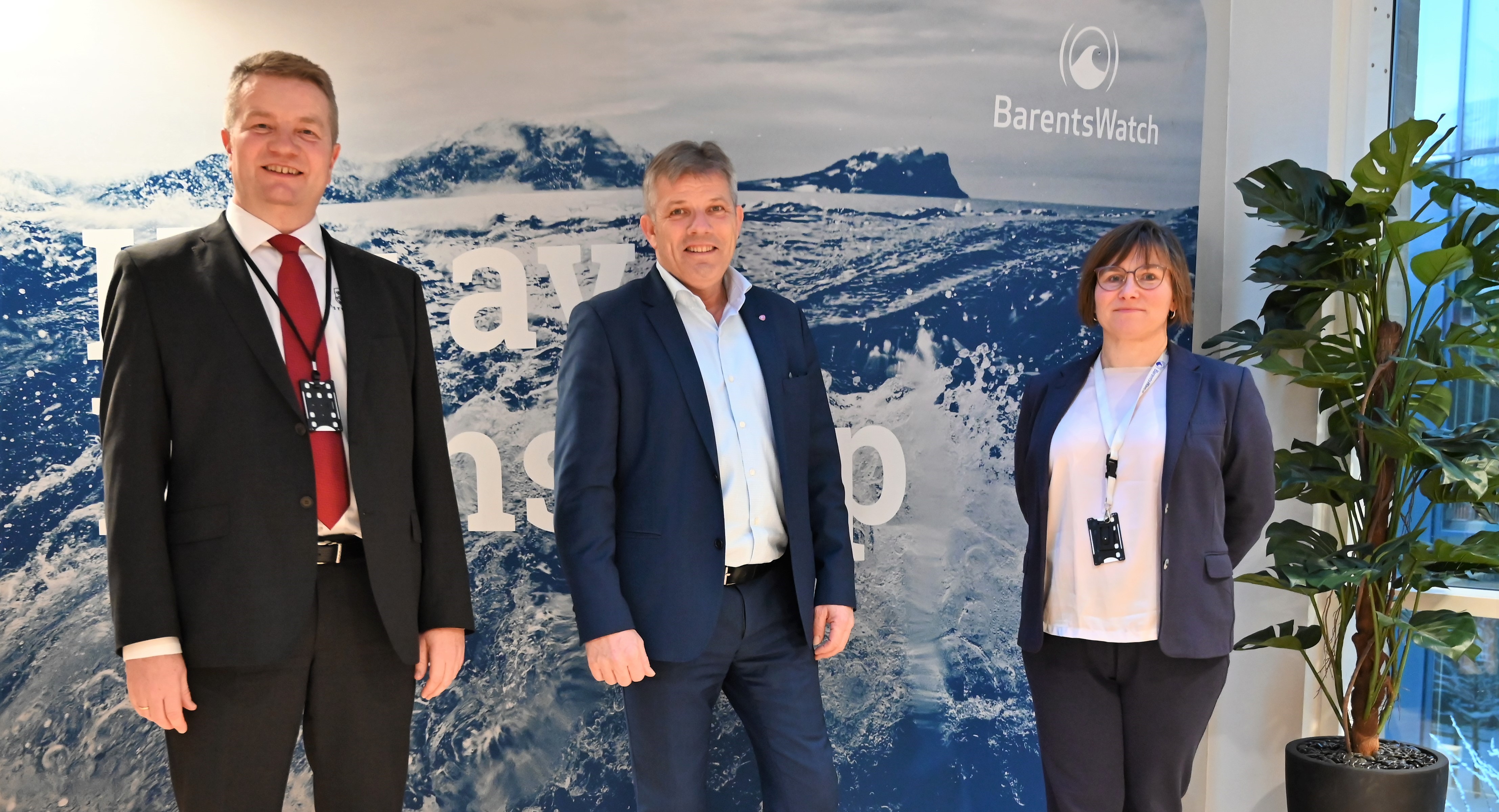 Mandag morgen var fiskeri- og havminister Bjørnar Selnes Skjæran på besøk hos BarentsWatch i Framsenteret i Tromsø. Her fikk vi den hyggelige meldingen om at Regjeringen vil øke bevilgningen til BarentsWatch med 10 millioner.