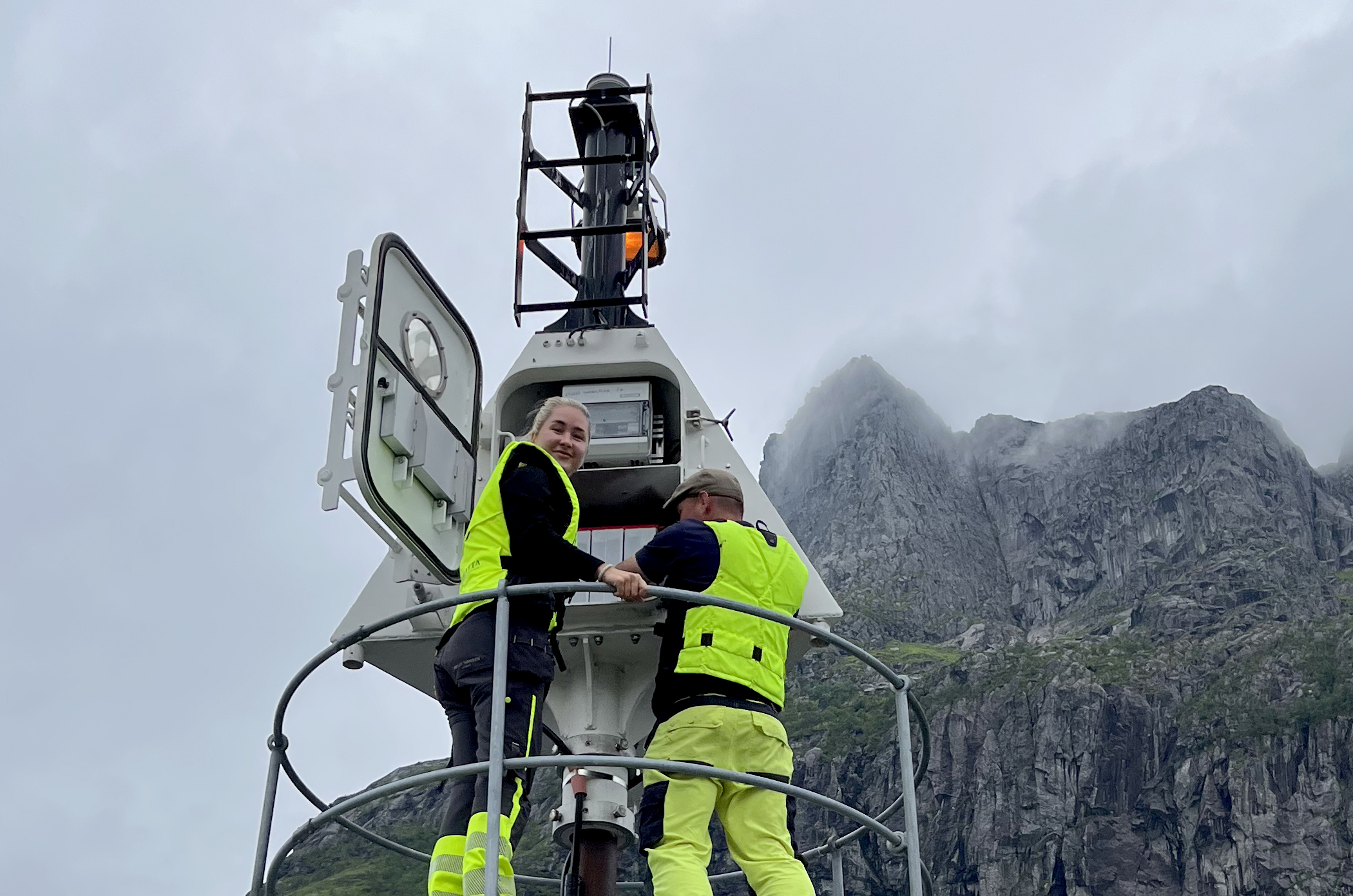 Yvonne Holsen Meier (27) frå Førde har sommarjobb på eit vedlikehaldslag på Vestlandet. Saman med eit anna vedlikehaldslag har dei ansvaret for å halde orden på rundt 5000 sjømerke mellom Egersund og Stad.