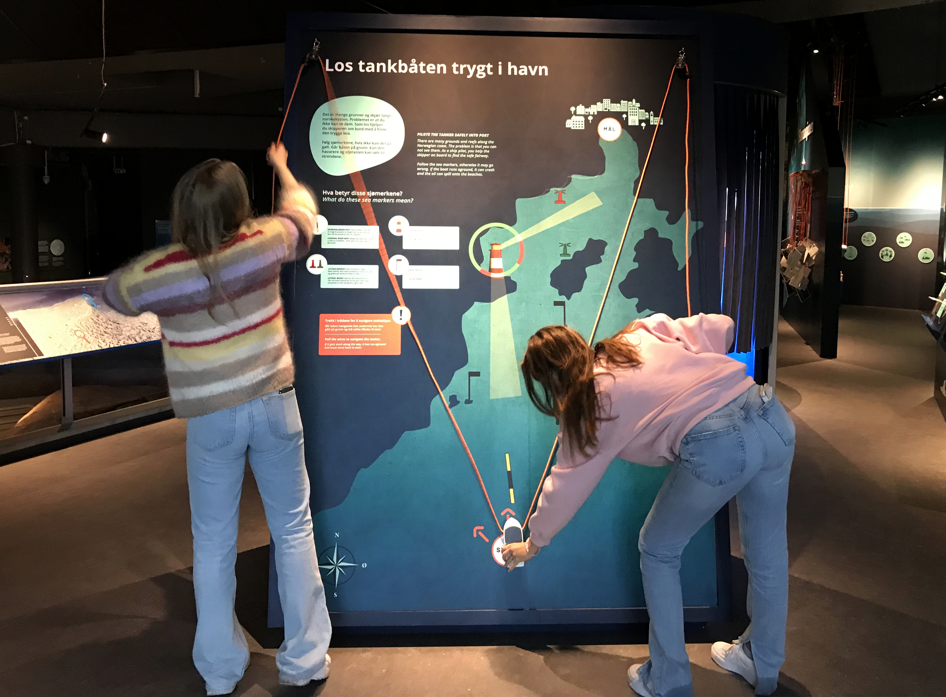 Test kunnskapane i «Hav-quizen», prøv å lose ein oljetankar trygt til land ved å følgje sjømerka, snurre lykkehjulet og få tips til eit spennande maritimt yrke, sjå og lær meir om sjøtrafikken i Breisundet – eller flytt lasteklosser for å teste kor mykje mindre energi det trengs for å flytte gods til sjøs.