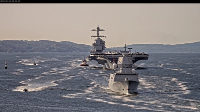 I tillegg til sjøtrafikk i sanntid er også andre deler av Kystverket involvert i et besøk som dette. Onsdag 24. mai var to loser om bord på verdens største militære fartøy for å lose det trygt inn Oslofjorden.