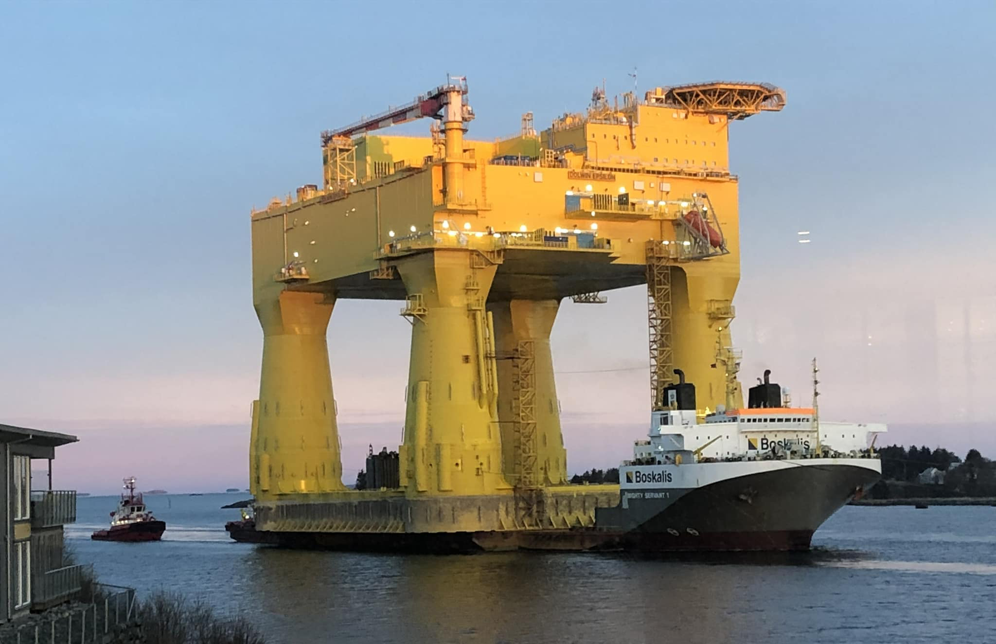 Heile sju losar var involvert i planlegginga og losing av den store gule plattforma DolWin Epsilon gjennom det tronge Karmsundet. Etter å ha vore vêrfast i tre veker, vart det endeleg gitt klarsignal på nyåret, og den enorme farkosten kunne manøvrerast trygt inn til Haugesund.