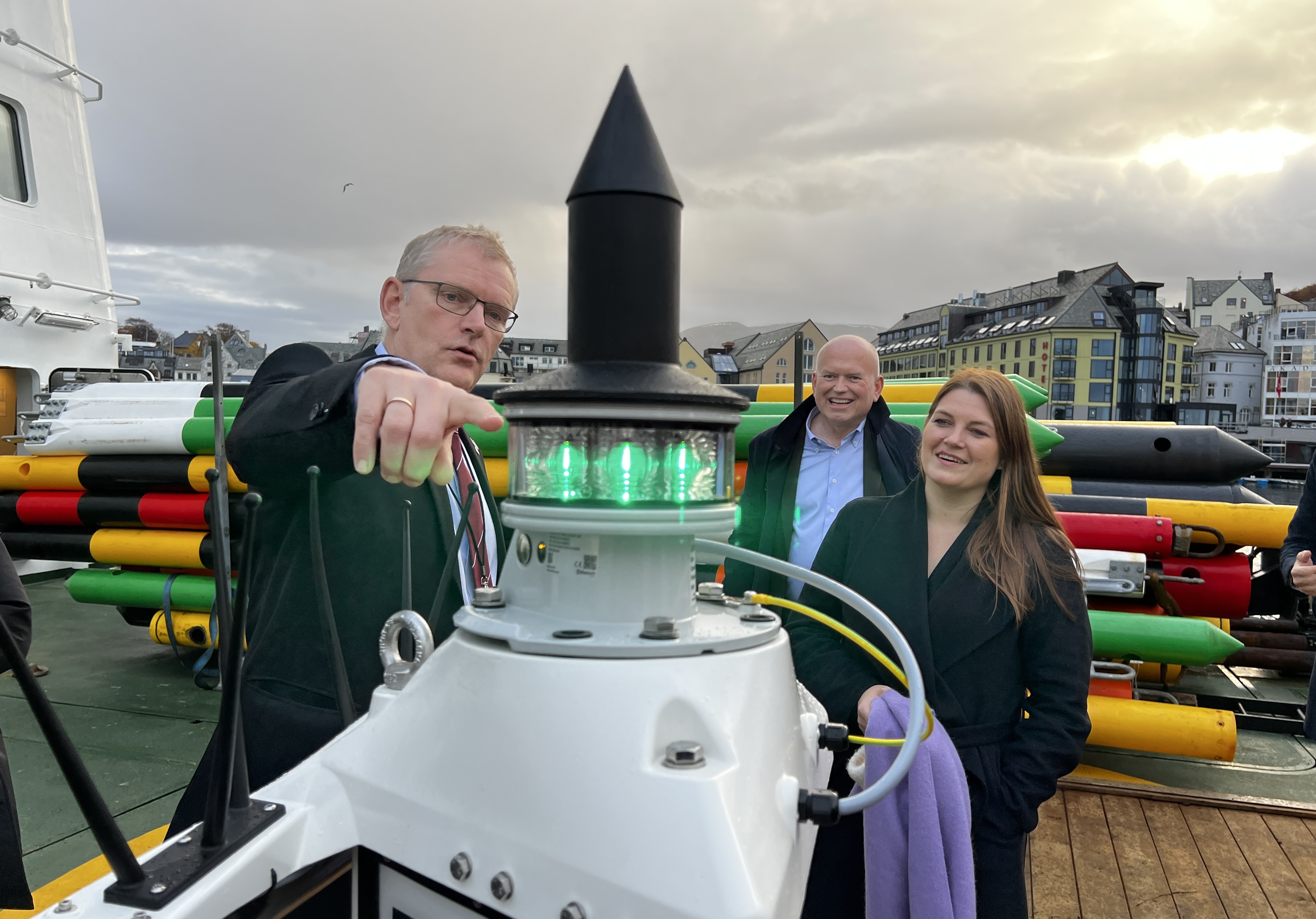 Fartøyet er eitt av fleire multifunsjonsfartøy som jobbar for å halde sjøvegen trygg, rein og effektiv. Statsråden frå Nærings- og fiskeridepartementet fekk omvising om bord og demonstrasjon av nye og smarte sjømerke under besøket. Sjømerka, som viktige for halda sjøvegen trygg for sjøfarande langs heile kysten, er i stadig utvikling – og Noreg ligg her langt framme når det gjeld å ta i bruk ny teknologi.