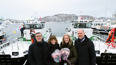 – Må hell og lykke følge deg og ditt mannskap i arbeid for Kystverket og sjøsikkerheten langs kysten, var lykkeønskningen fra de to gudmødrene Nora Helen Lund Lyngra og Therese Ekornåsvåg, da de med en treause med sjøvann døpte henholdsvis MS Skrova og MS Stabben ved Kystverkets anlegg i Nørvevika i Ålesund.