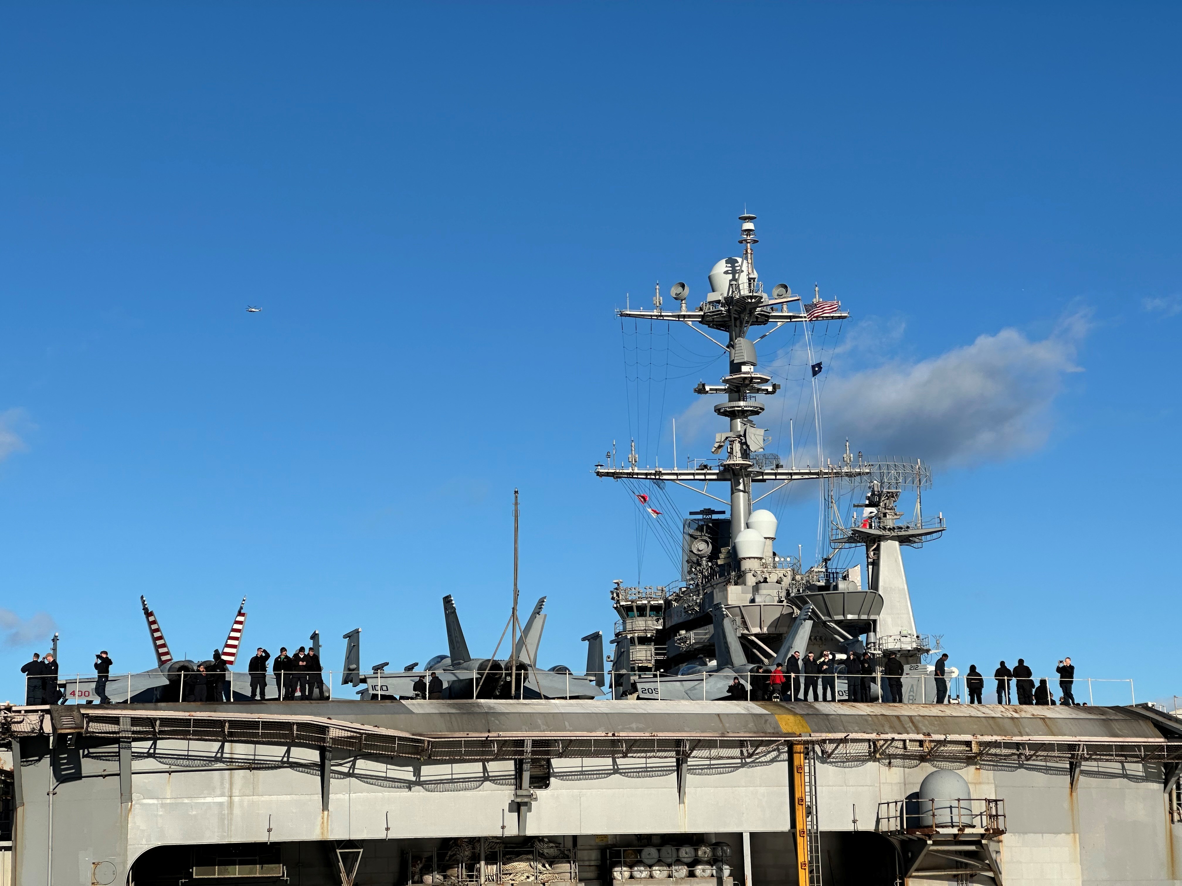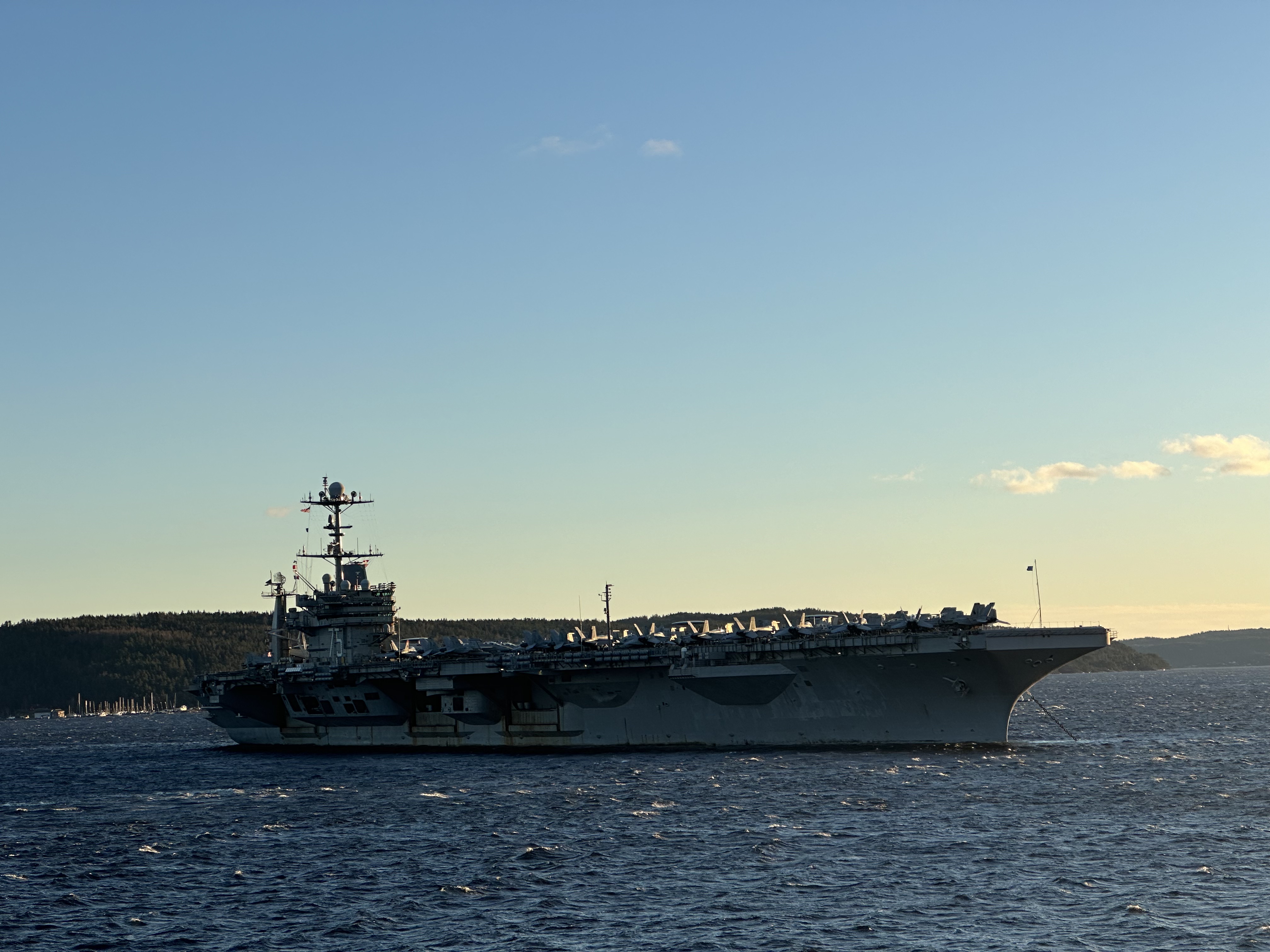 Hangarskipet er over 330 meter langt, nesten 80 meter bredt, og er utstyrt med to atomreaktorer. For å få denne giganten trygt inn i det smale farvannet, er det to loser om bord. Selv om vi har mange teknologiske verktøy som bidrar til at dette skal gå fint, har losene også kunnskapen som trengs for å få fartøyene trygt i havn dersom alle hjelpemidler går i svart.