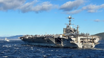 Båtførere skal holde avstand på 0,5 nautisk mil til hangarskipet ved inn- og utseiling, samt når det er oppankret.