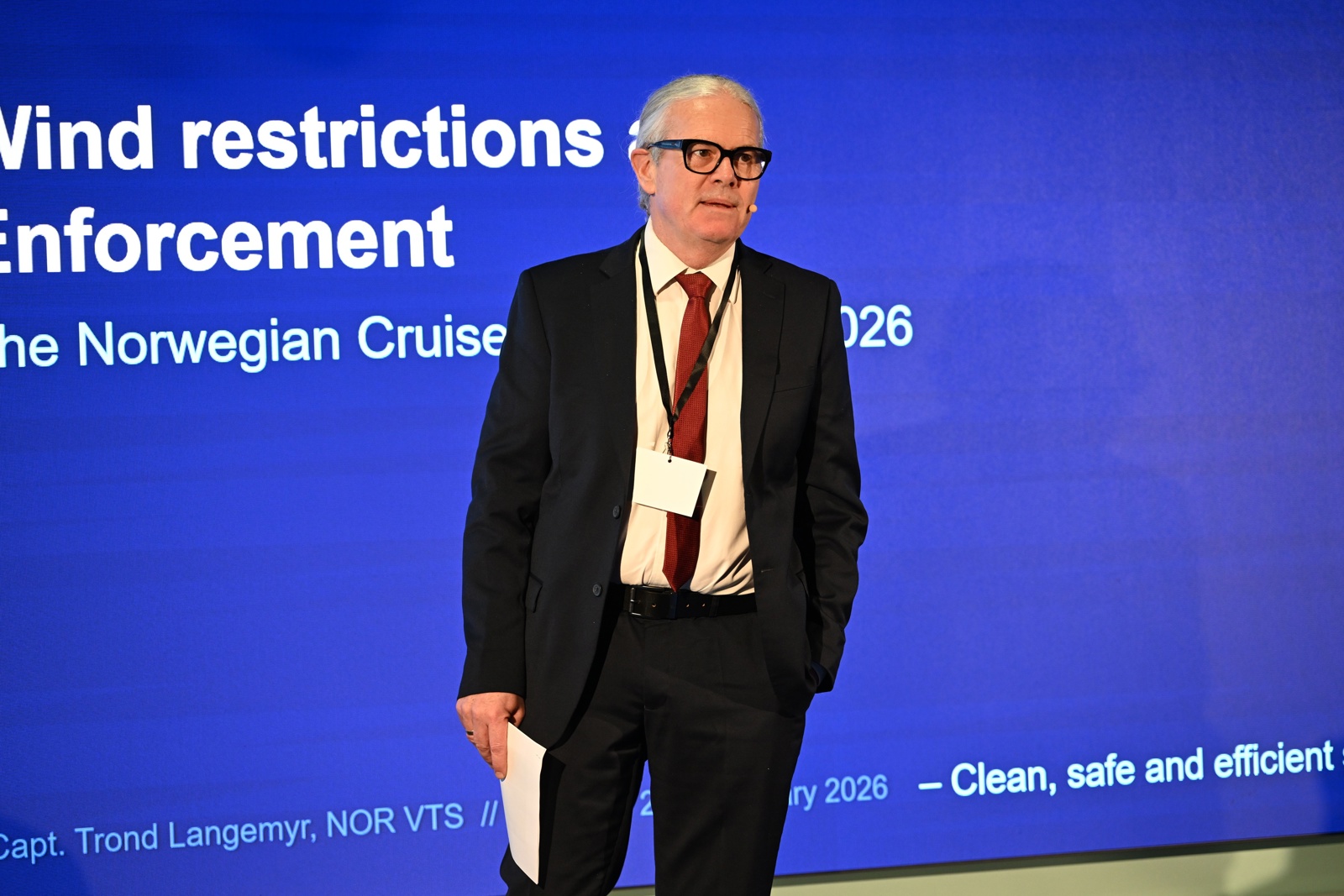 Kystdirektør Einar Vik Arset åpnet konferansen med å vise til rekordtall for 2025: nær 4000 cruiseanløp og 1,6 millioner unike cruisepassasjerer langs norskekysten. Samtidig understreket han at økt trafikk stiller høyere krav til sikkerhet og beredskap, og at nært samarbeid mellom myndigheter og næring er avgjørende.