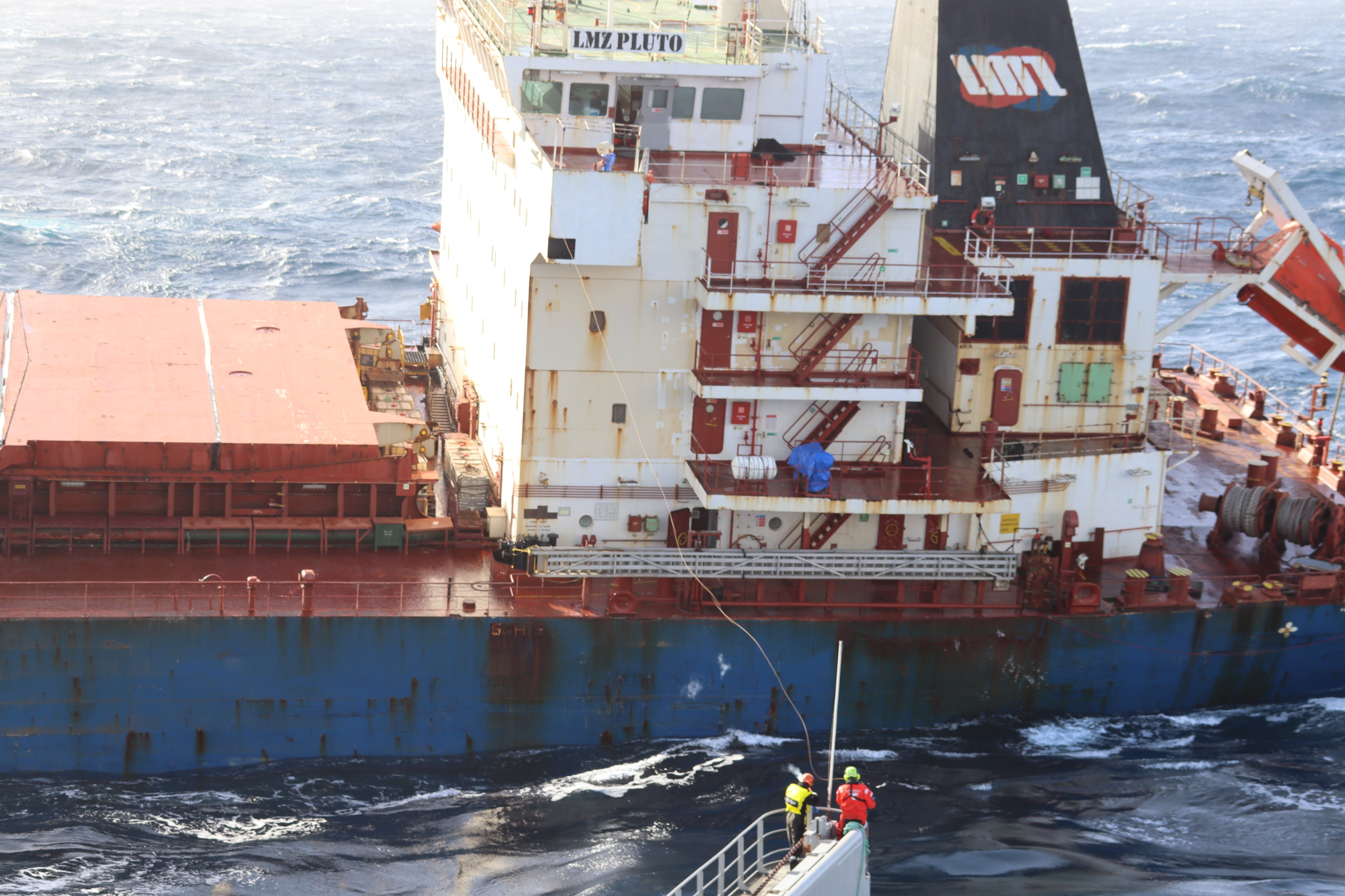 Bulkskipet LMZ Pluto på 190 meter, lastet med kunstgjødsel, var på vei fra Murmansk i Russland til Santa Maria i Colombia. Skipet er eid av det greske rederiet LMZ Shipping. Kunstgjødsel er ikke en sanksjonert vare og skipet er ikke en del av skyggeflåten. Lasten er heller ikke regnet som miljøfarlig.