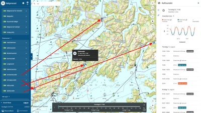 Den planlagte seilasen kan også tegnes rett inn i karttjenesten til BarentsWatch, eller hentes inn rett fra båtens navigasjonsplattform (ECDIS/ECS). En fil legges enkelt inn i tjenesten på nettsiden, og du får tilbake et bølgevarsel for akkurat din valgte seilas.