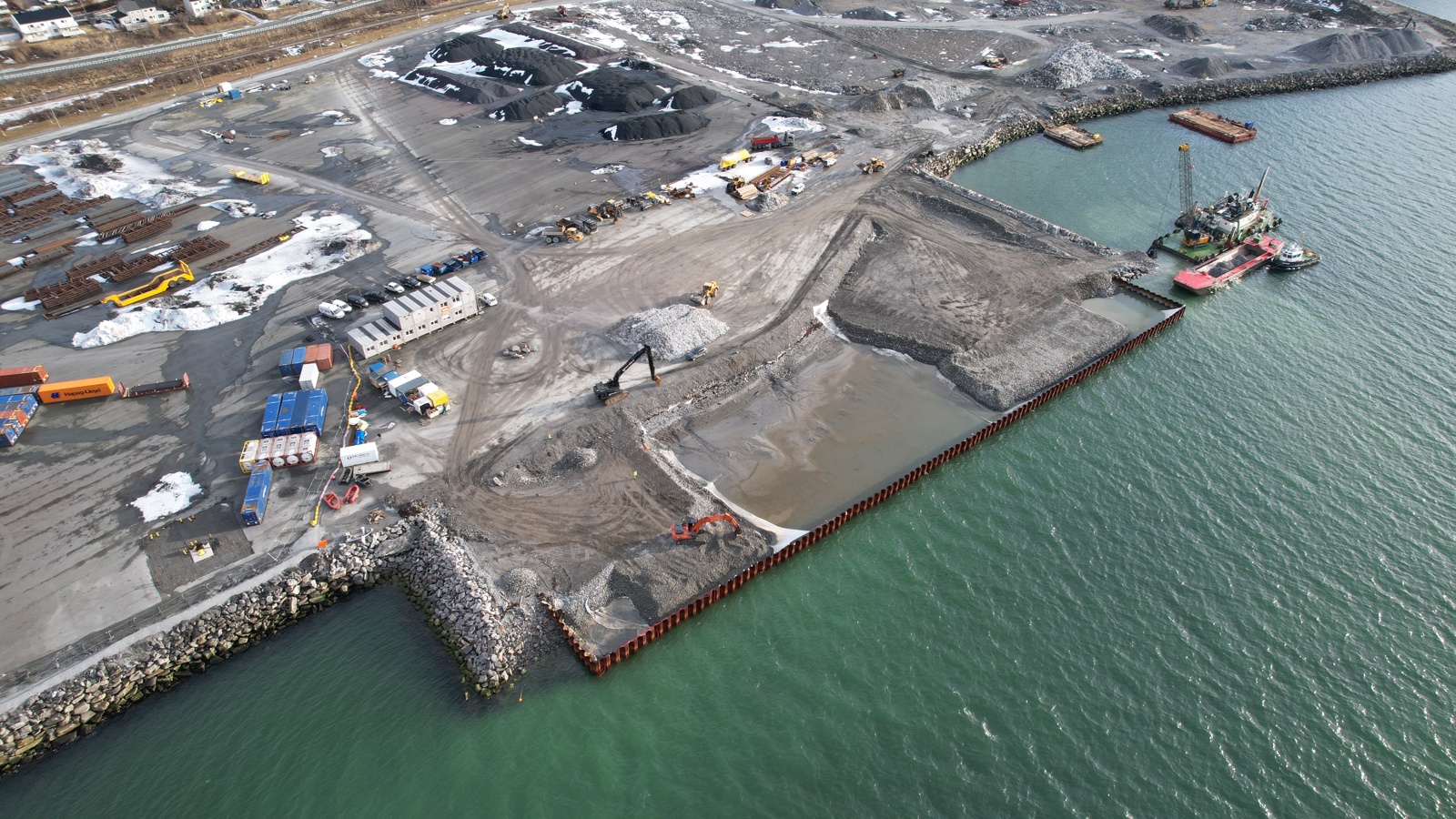 Arbeidet startet våren 2024 med etablering av et deponiområde ved Langneset. Deretter er cirka 70 000 kubikkmeter mudret for å oppnå 15 meters dybde ved kai. Massene er brukt til å etablere nytt landareal.