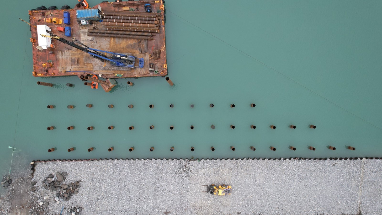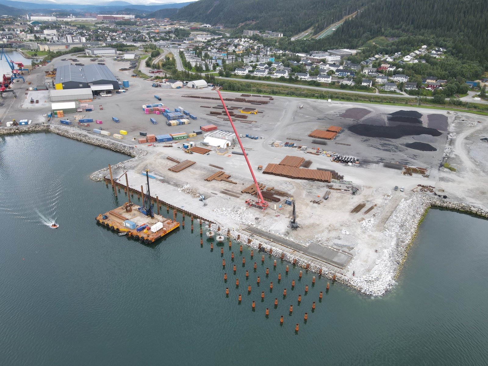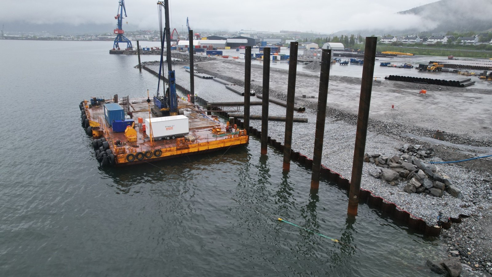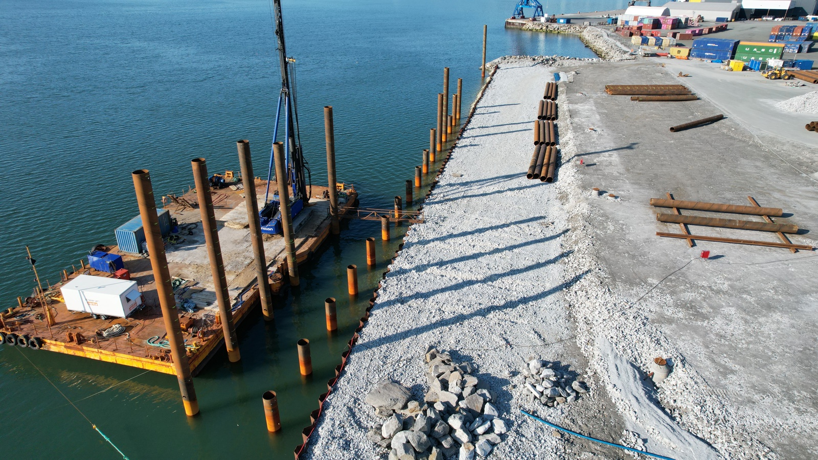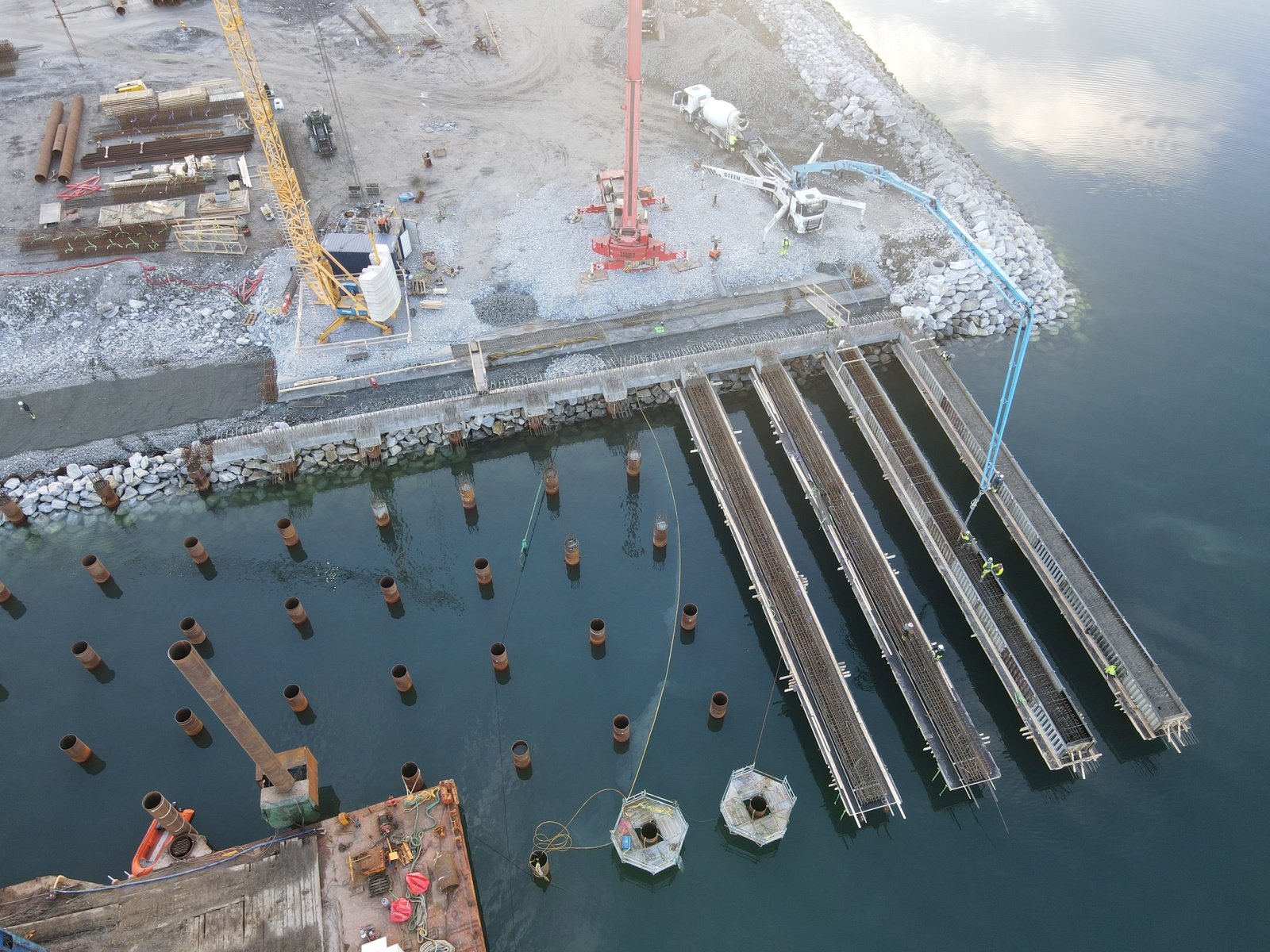 Fundamenteringen ble ferdigstilt i 2025. Totalt er 156 stålrørspeler rammet ned til fjell, armert og støpt. Dette danner grunnlaget for kaia.