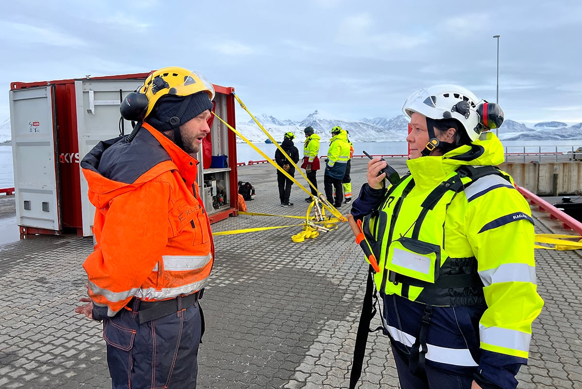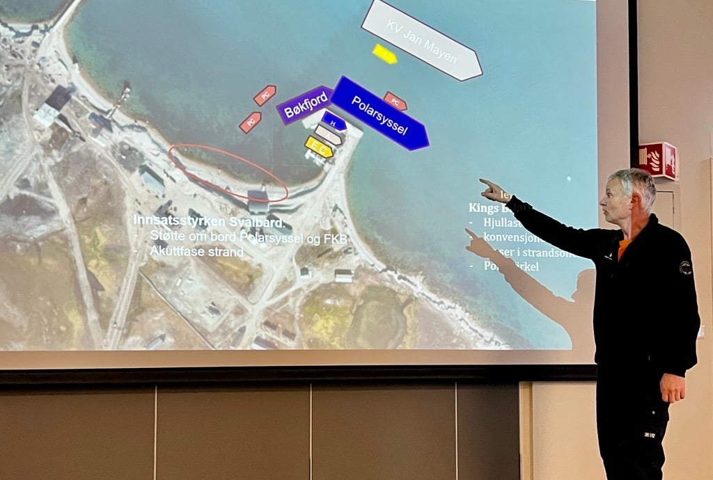 – På Svalbard er det ekstra mange utfordringer. Vi er i Arktis, midt mellom fastlandet og Nordpolen. Kulde, dårlig dekning, store avstander og få ressurser gjør at det er viktig å øve her. Sjøområdene er ofte dårligere kartlagt, og med økende cruisetrafikk og sårbar natur er det økt risiko for at noe kan skje, sier øvingsleder Nils Ove Sollid fra Kystverkets miljøberedskap.