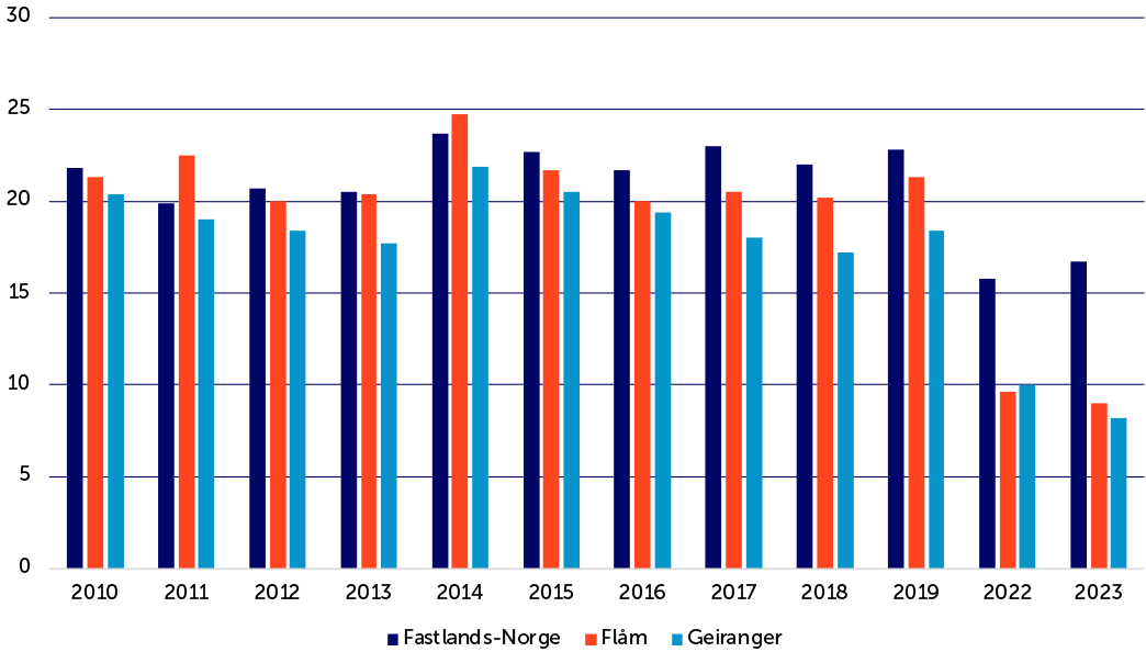 Figur 4 Gjennomsnittsalder for cruiseskip til fastlands-Norge, Flåm og Geiranger,.png