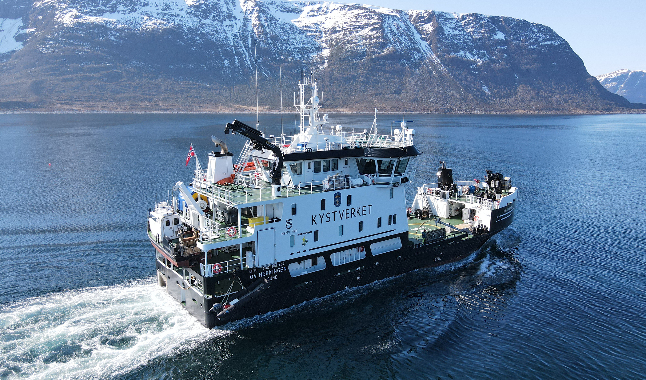 Kystverket har fått godt gjennomslag for sine prioriteringar i Nasjonal transportplan 2022-2033. Illustrasjonsfoto av Kystverkets fartøy OV Ryvingen