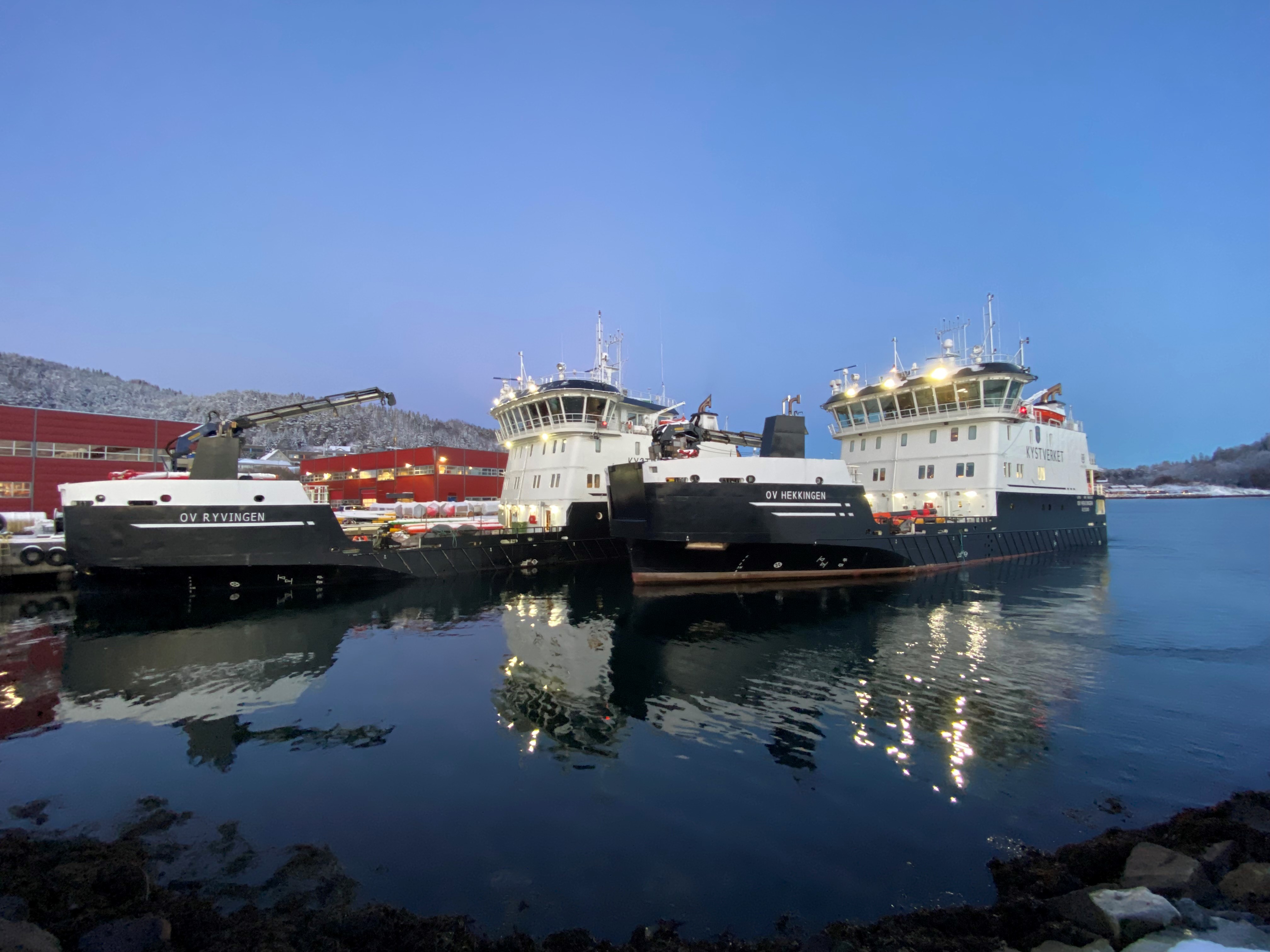 OV Hekkingen og OV Ryvingen til kai ved Kystverkets base i Ålesund.