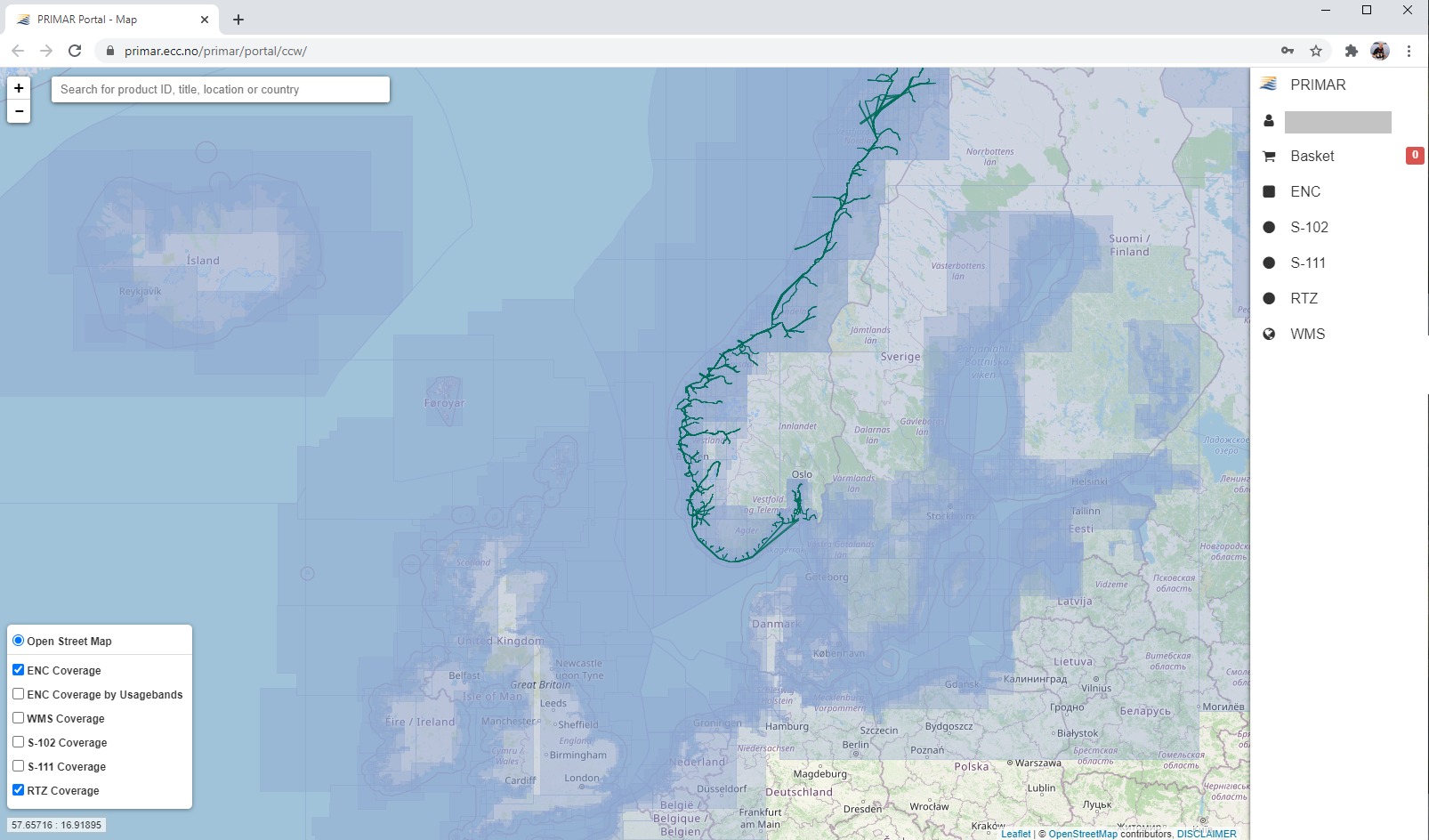 Kystverkets digitale seilingsruter i kartkatalogen til PRIMAR.