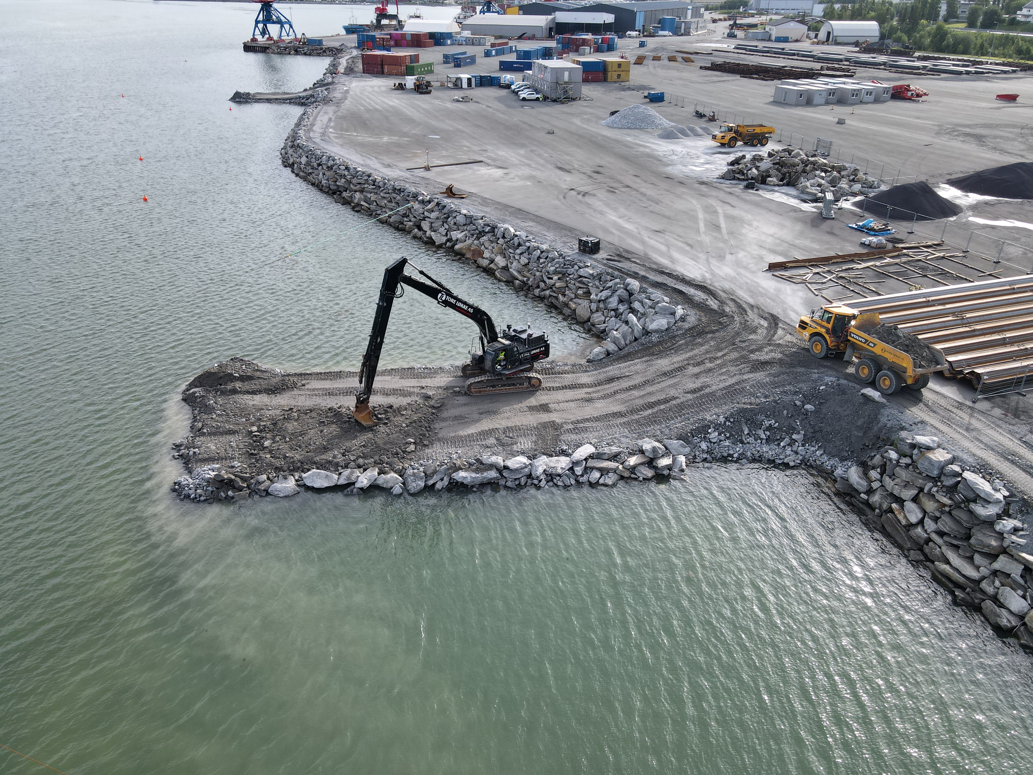 Etablering av ny dypvannskai på Langneset. Bilde fra juni, 2024.