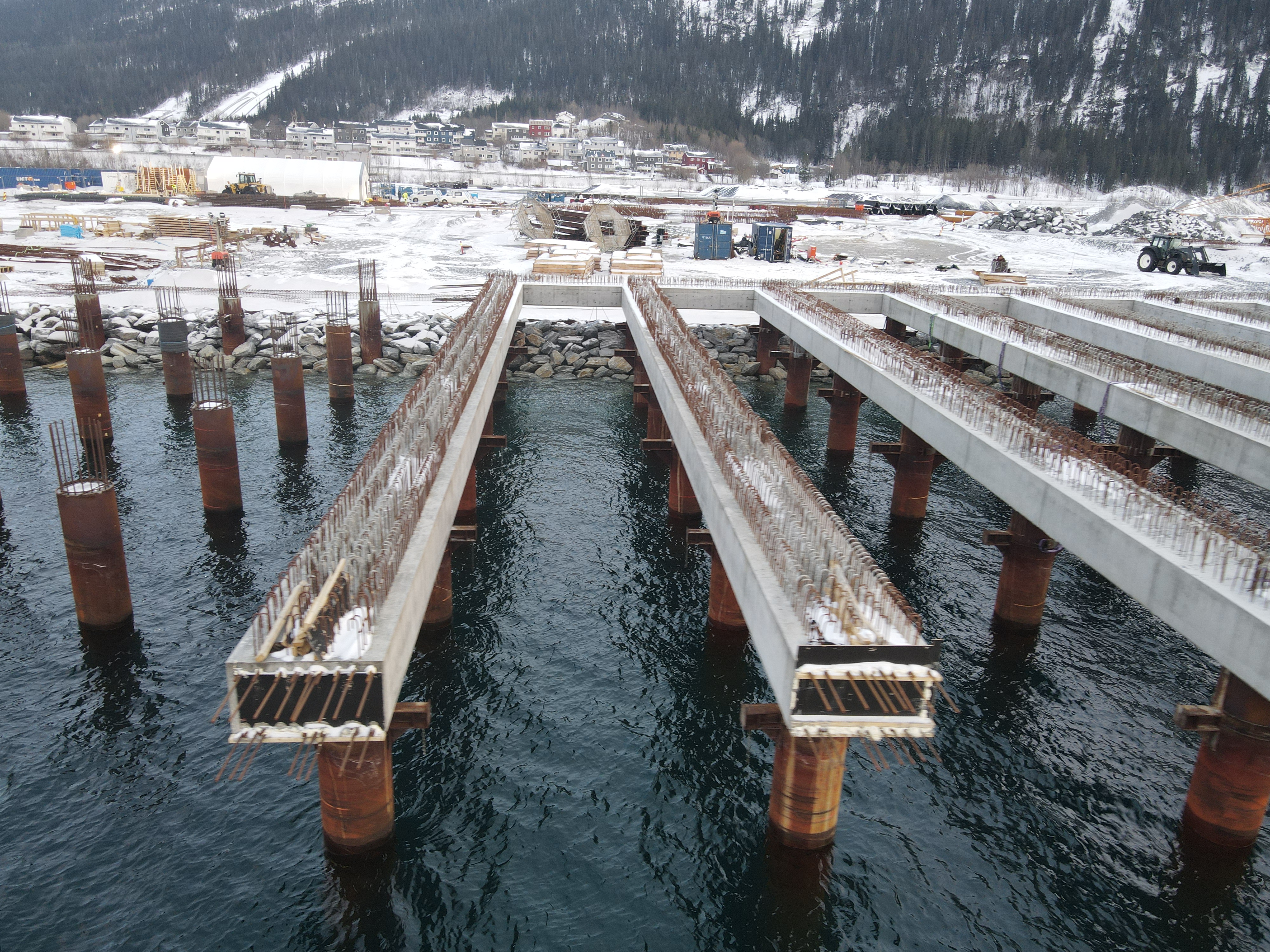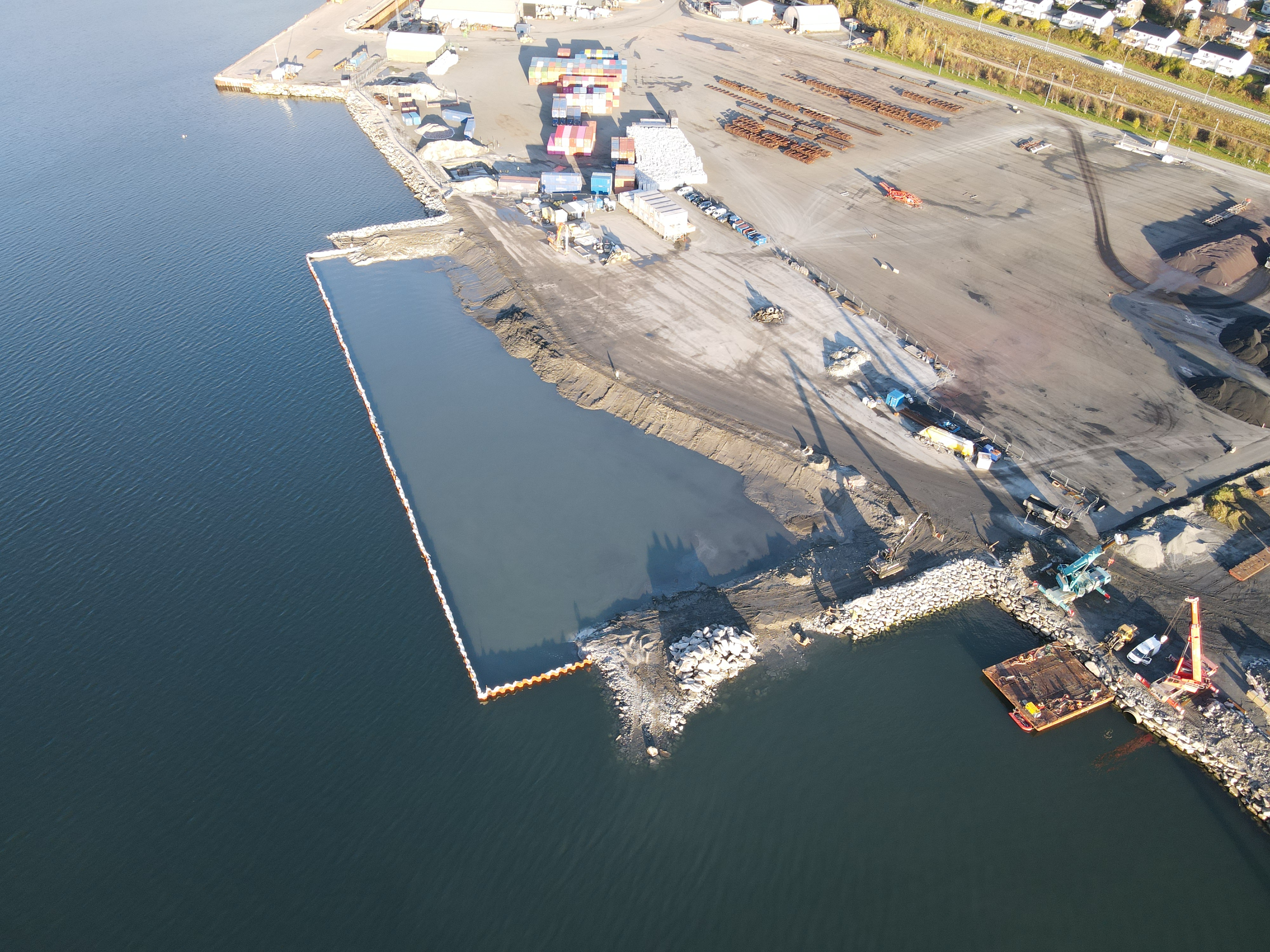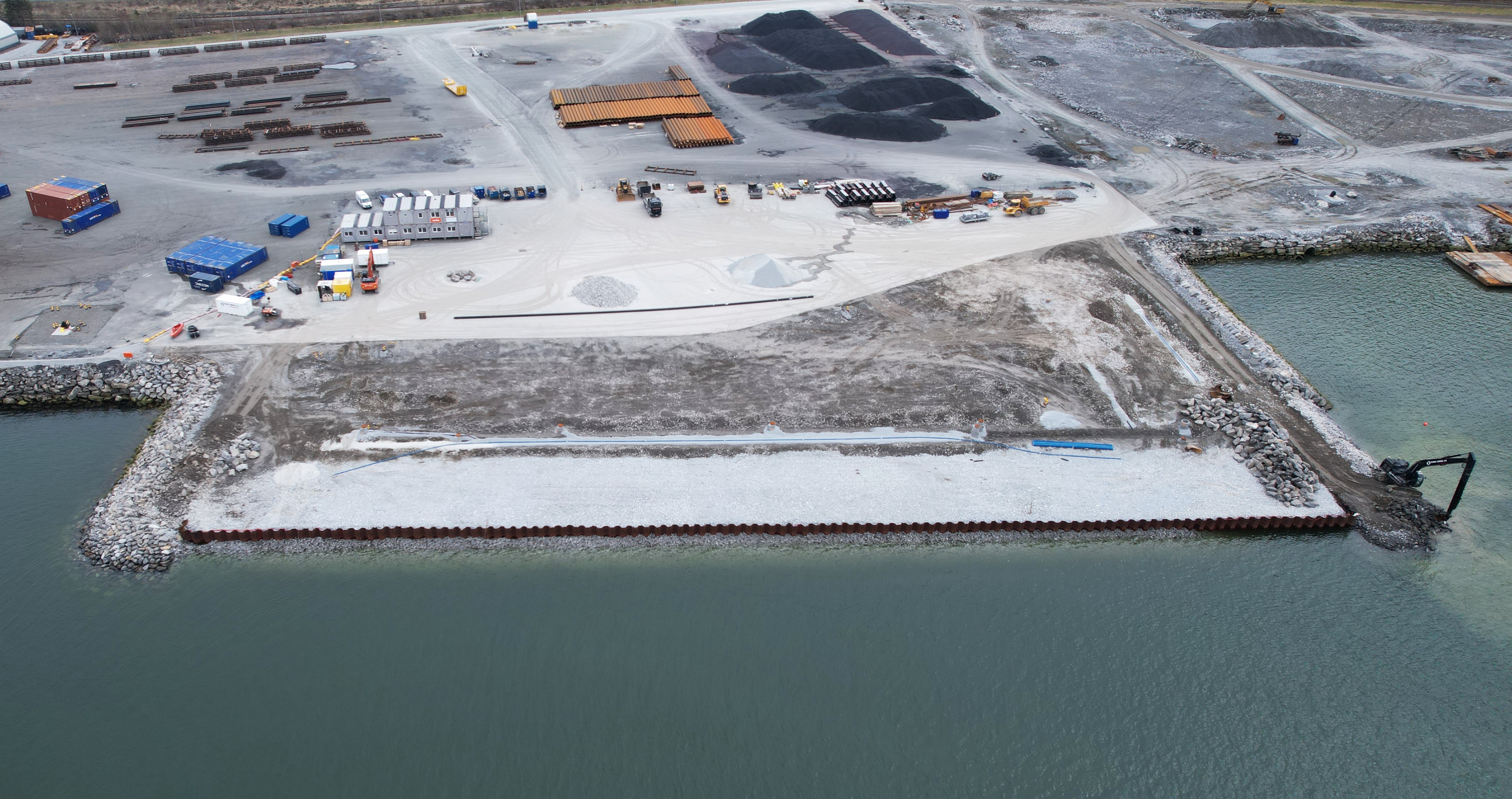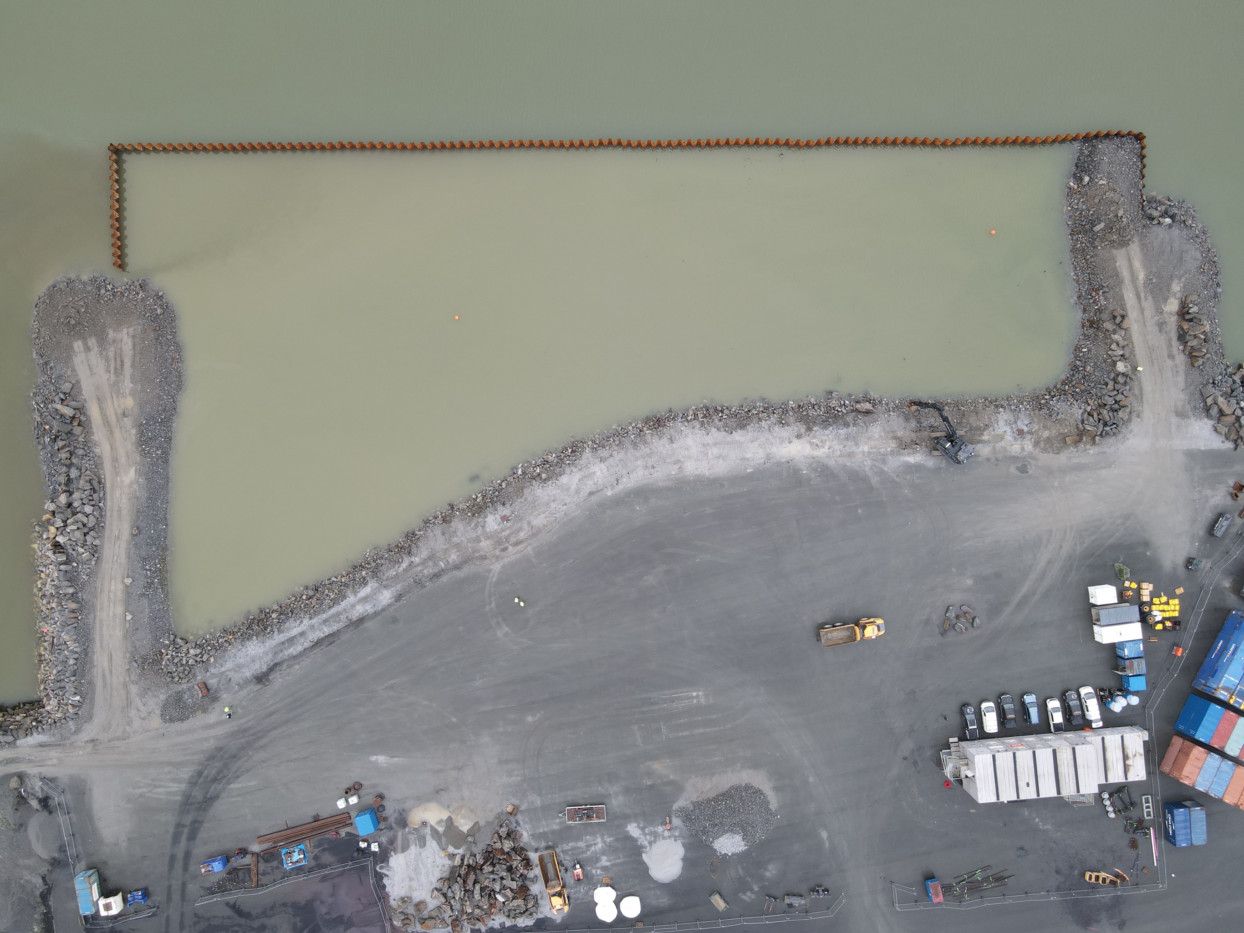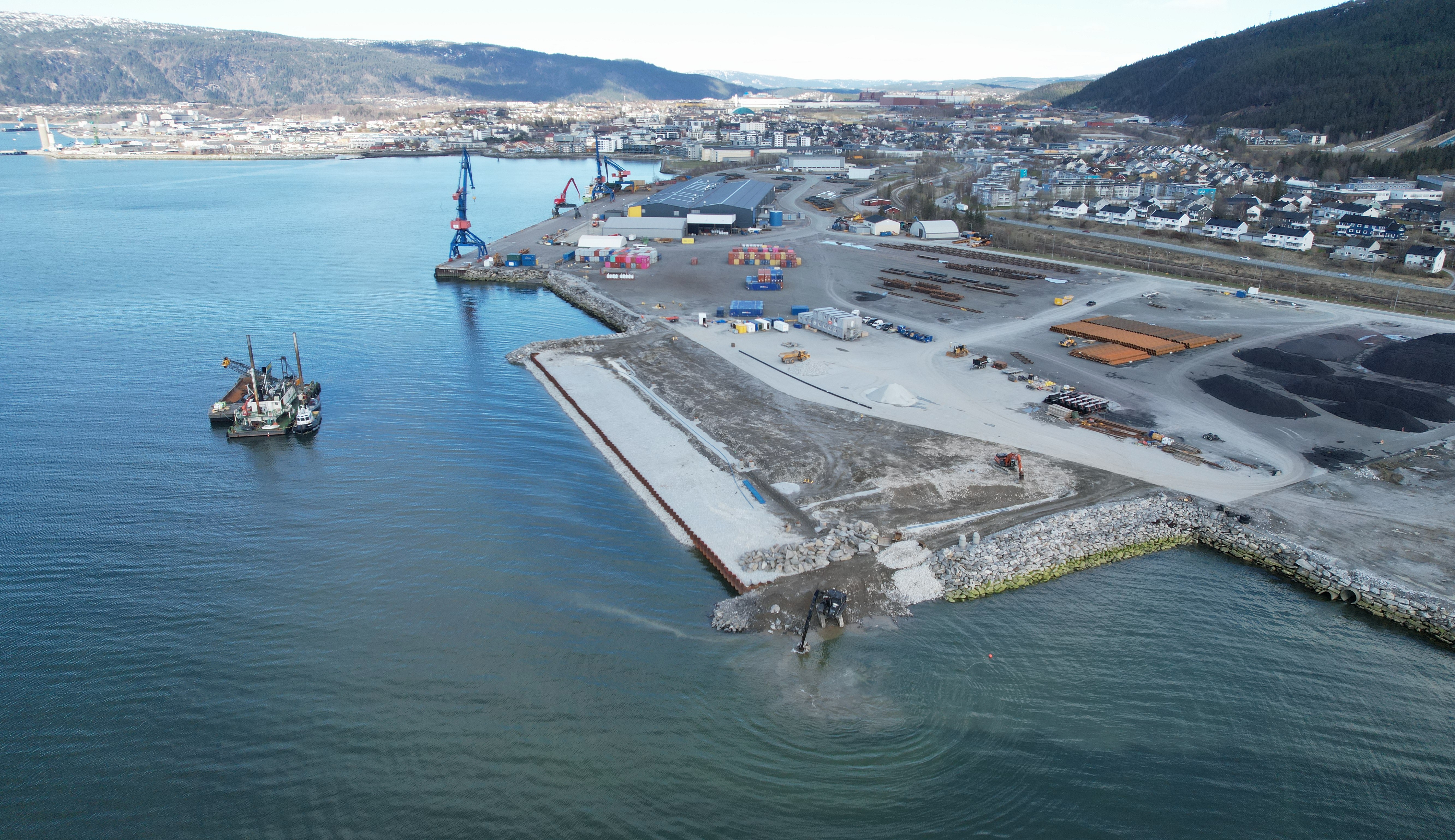 Etablering av ny dypvannskai på Langneset. Bilde fra mai, 2024.
