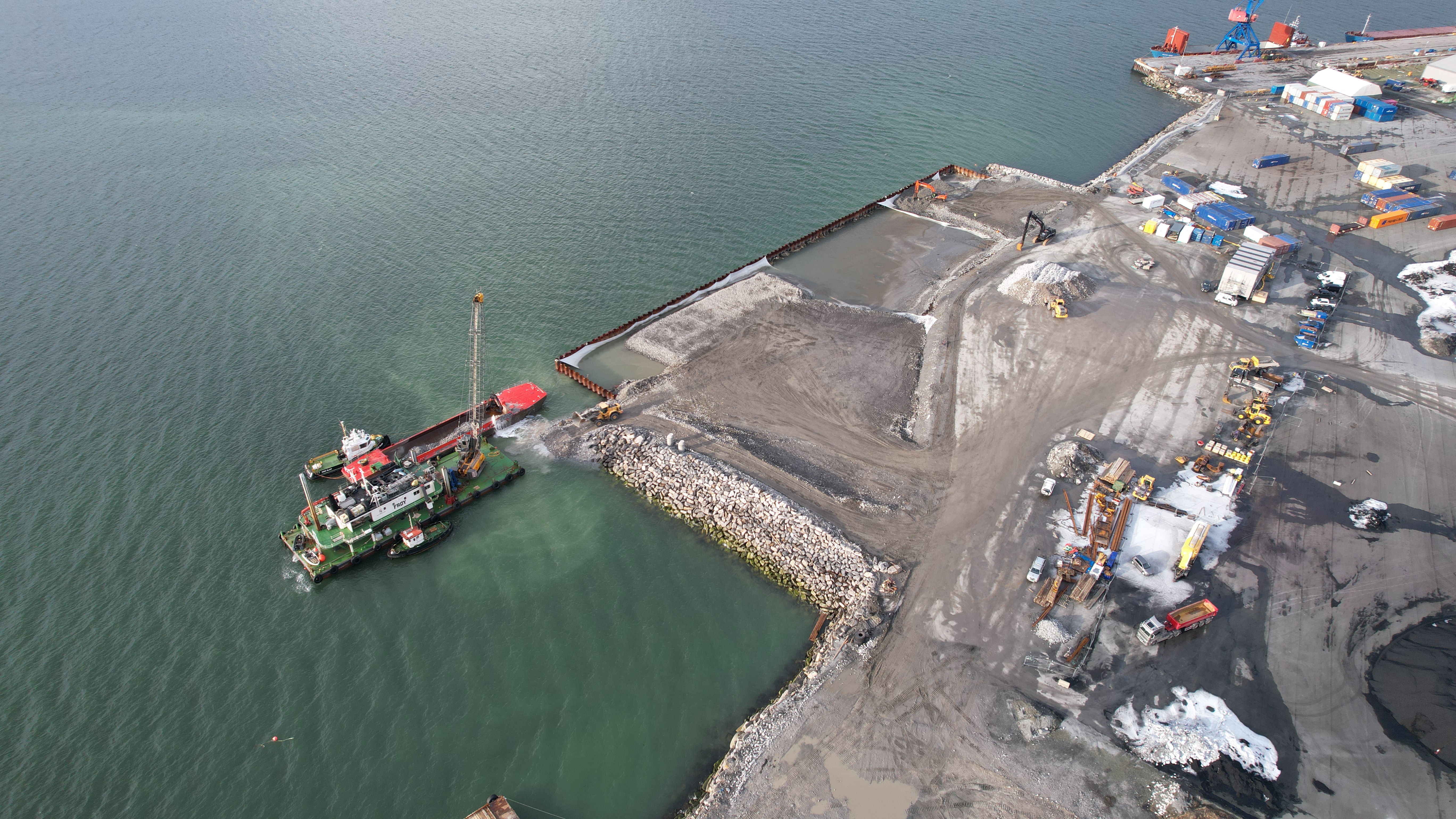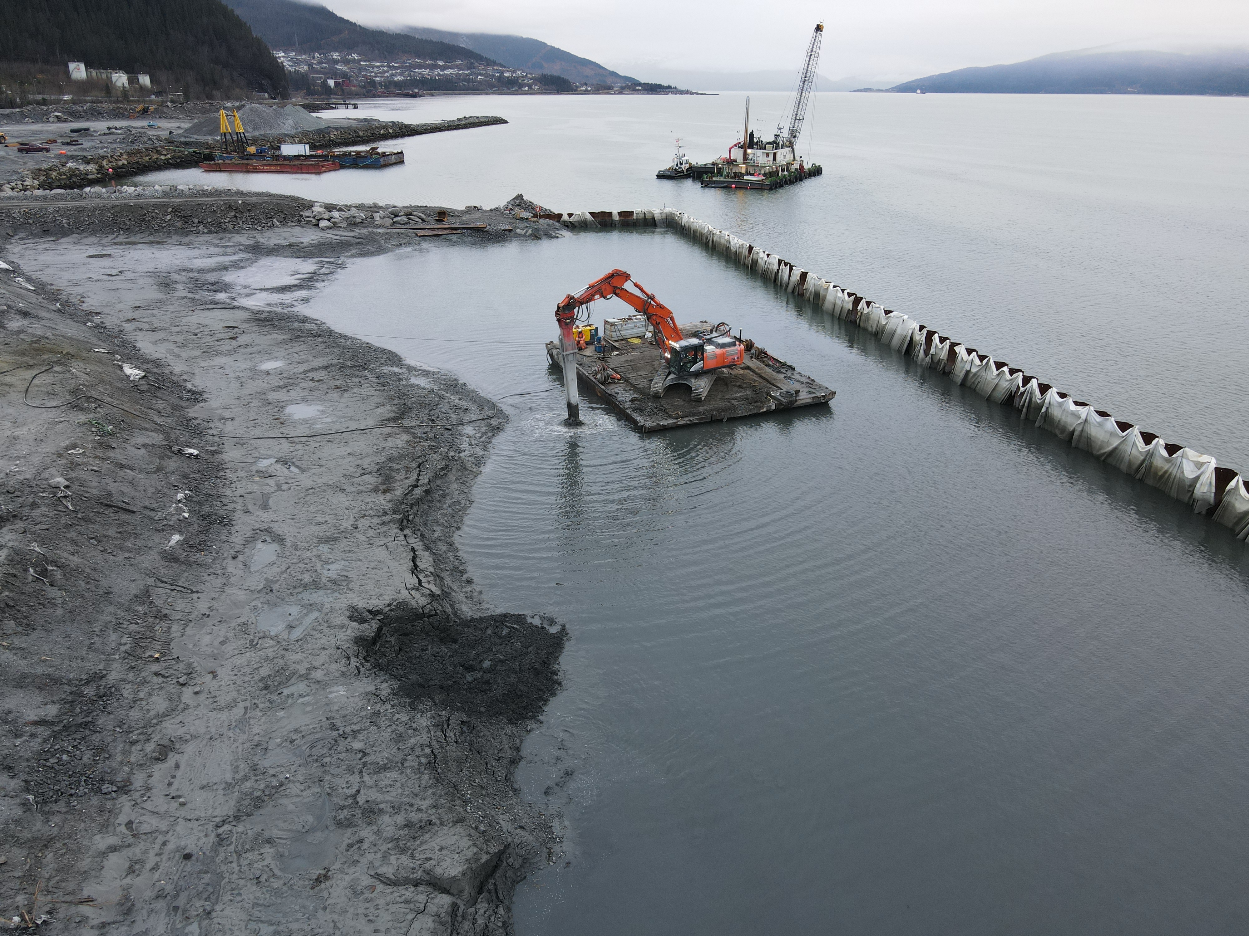 Etablering av ny dypvannskai på Langneset. Bilde fra november, 2024.