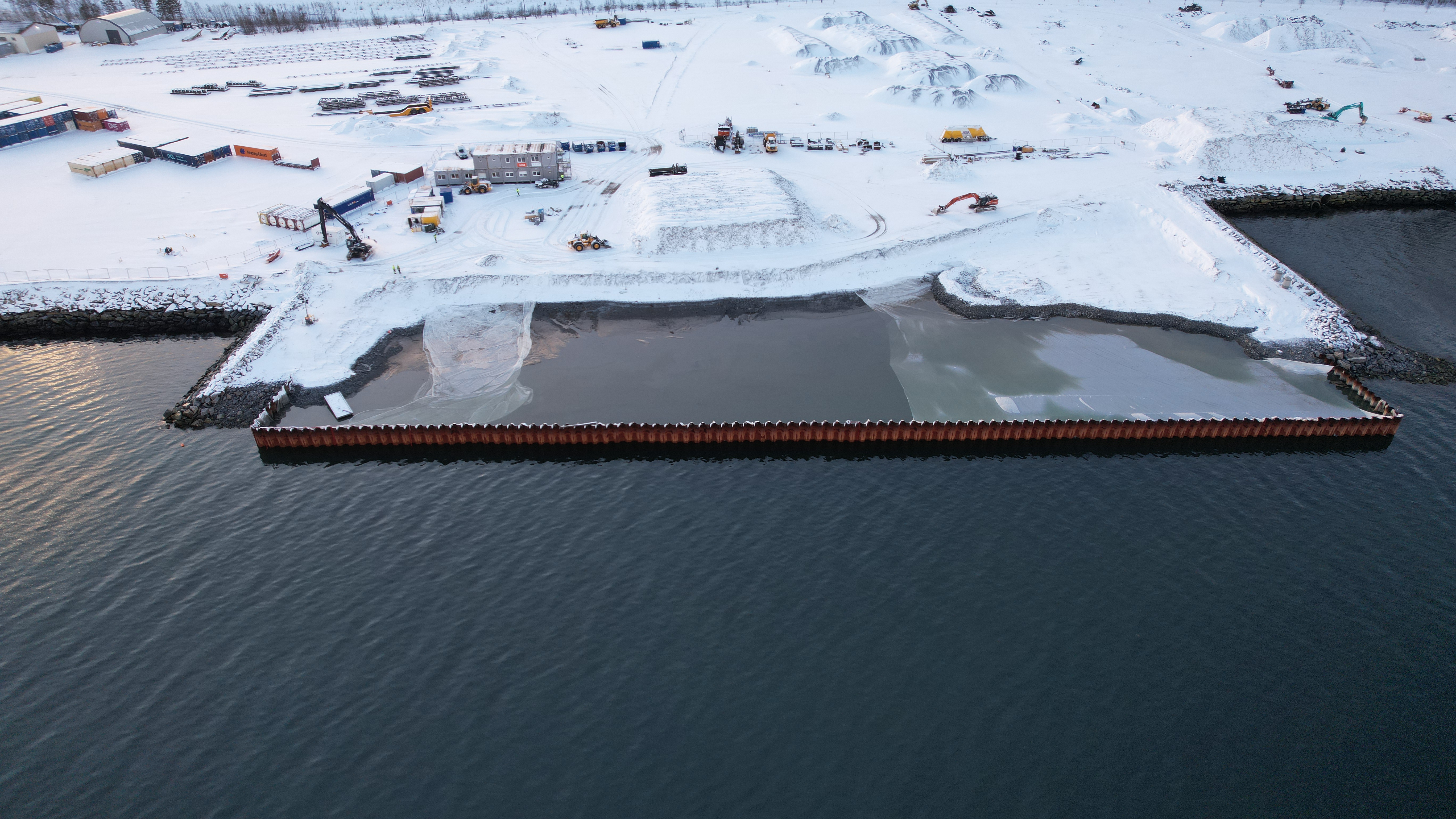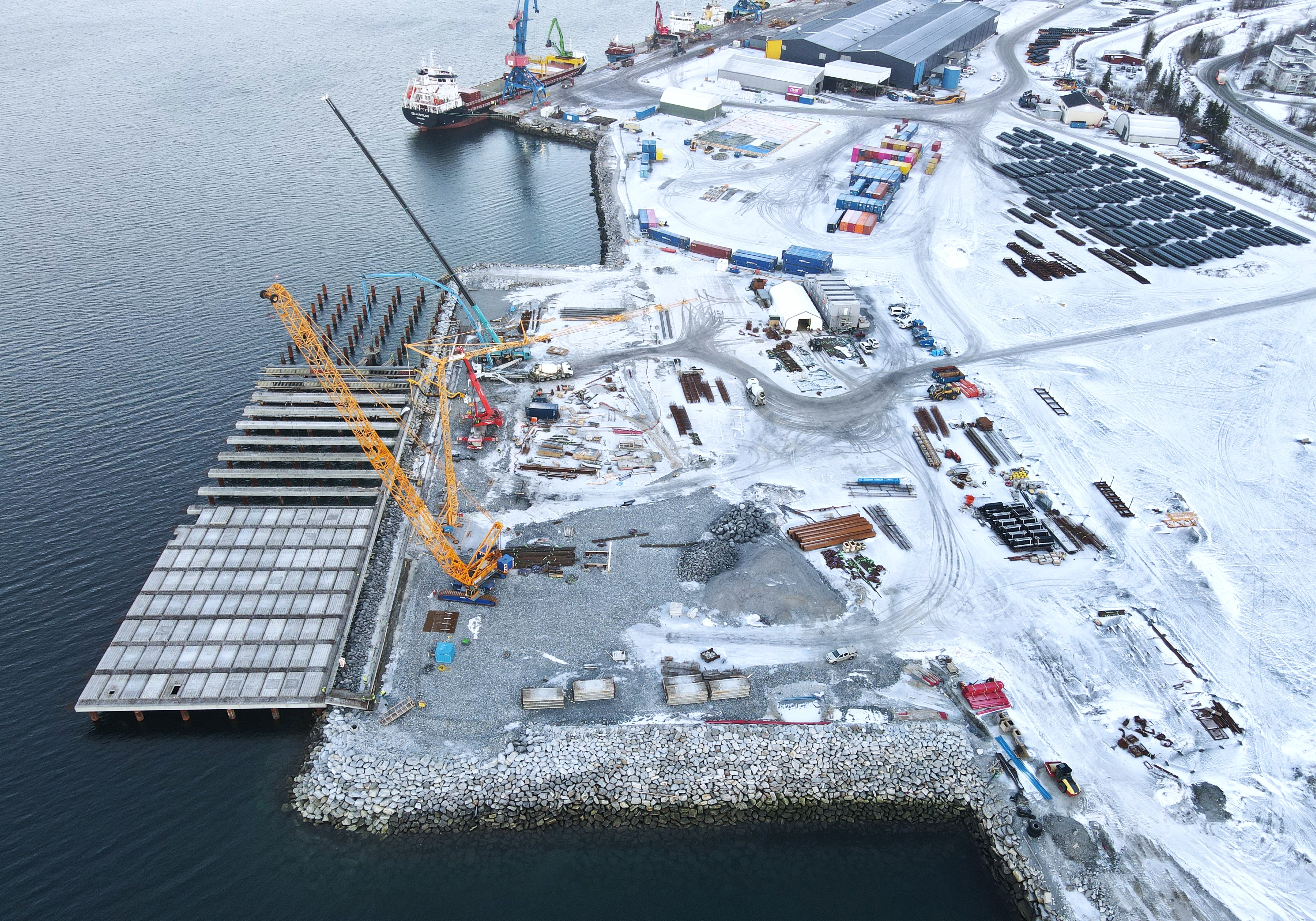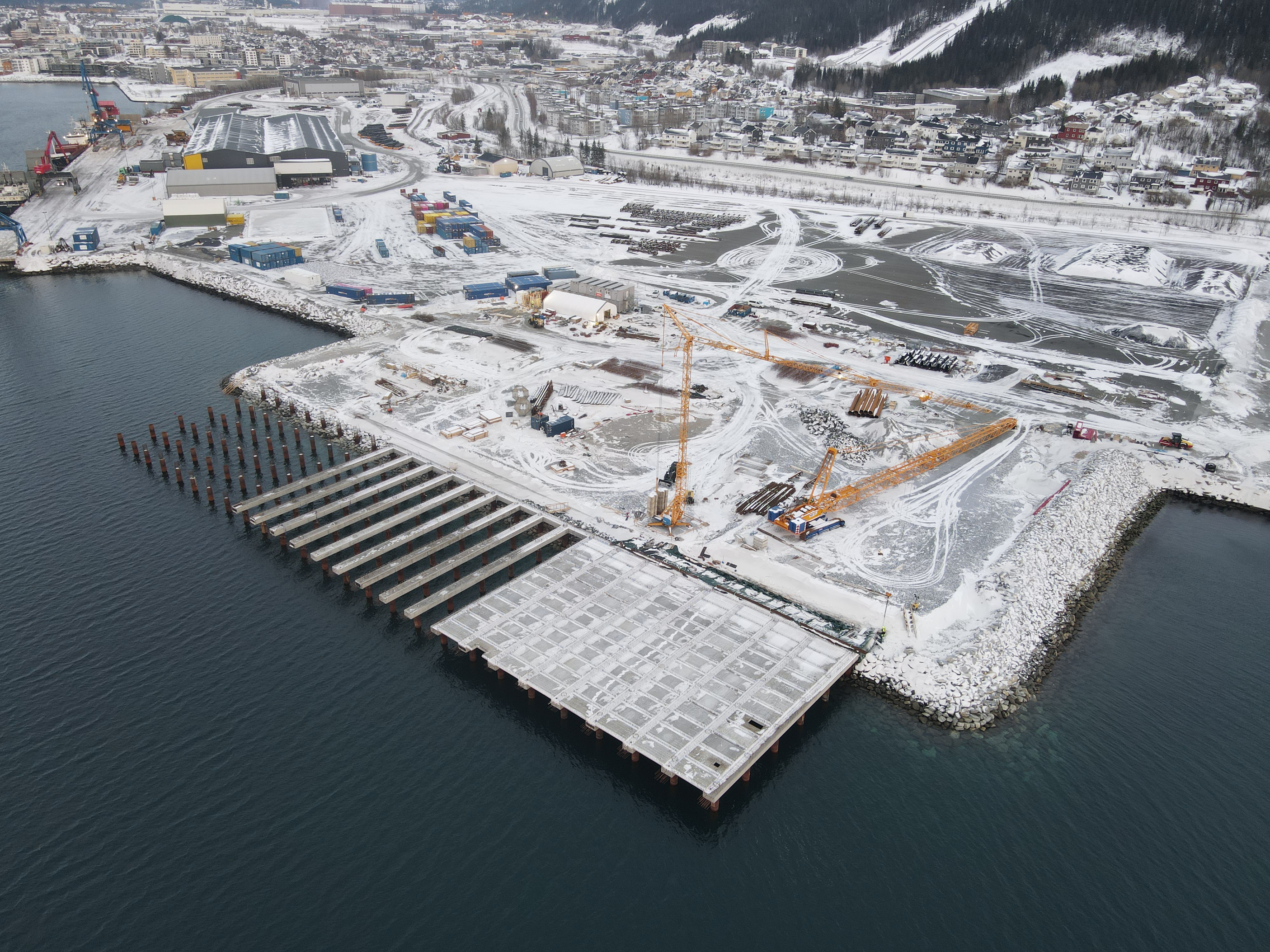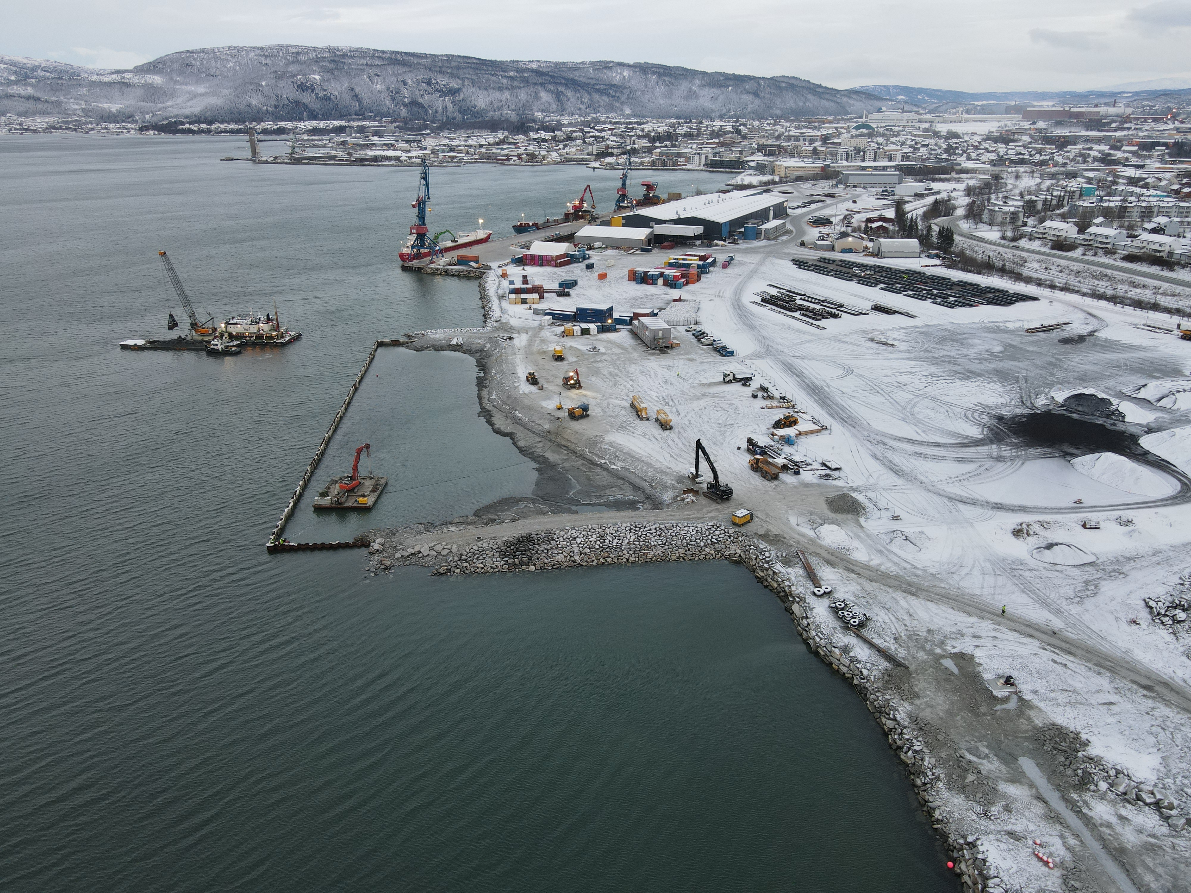 Etablering av ny dypvannskai på Langneset. Bilde fra februar, 2026.