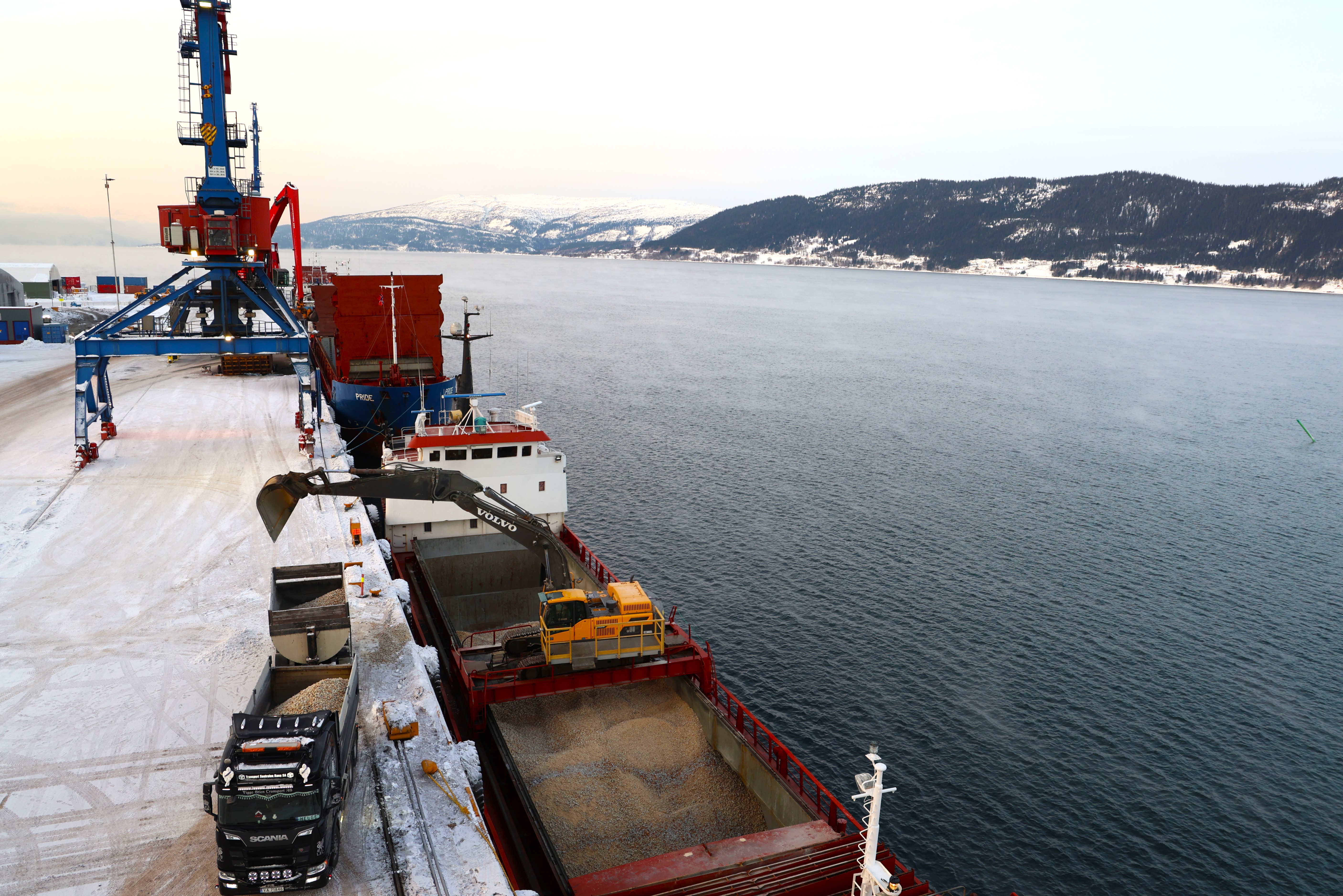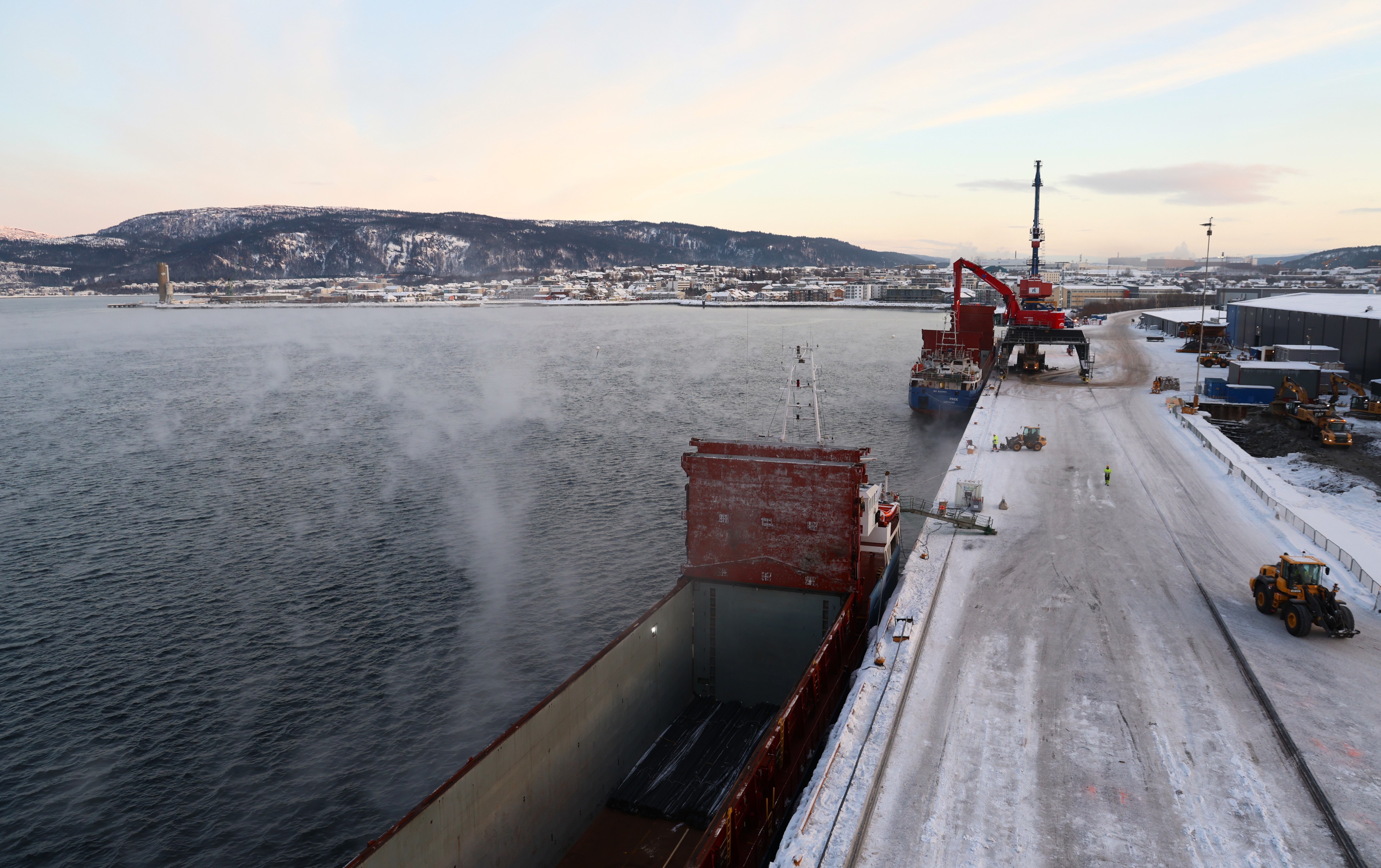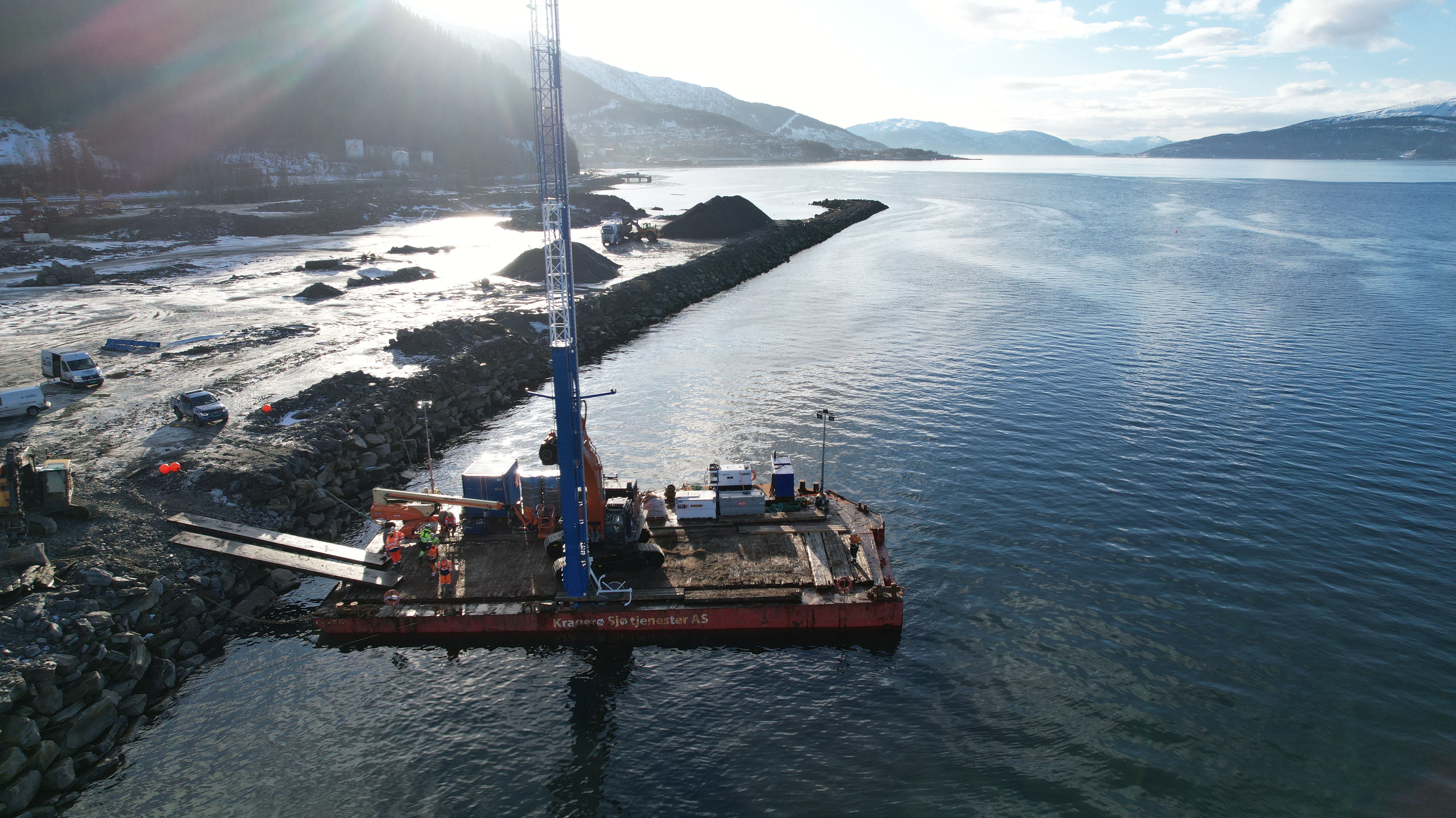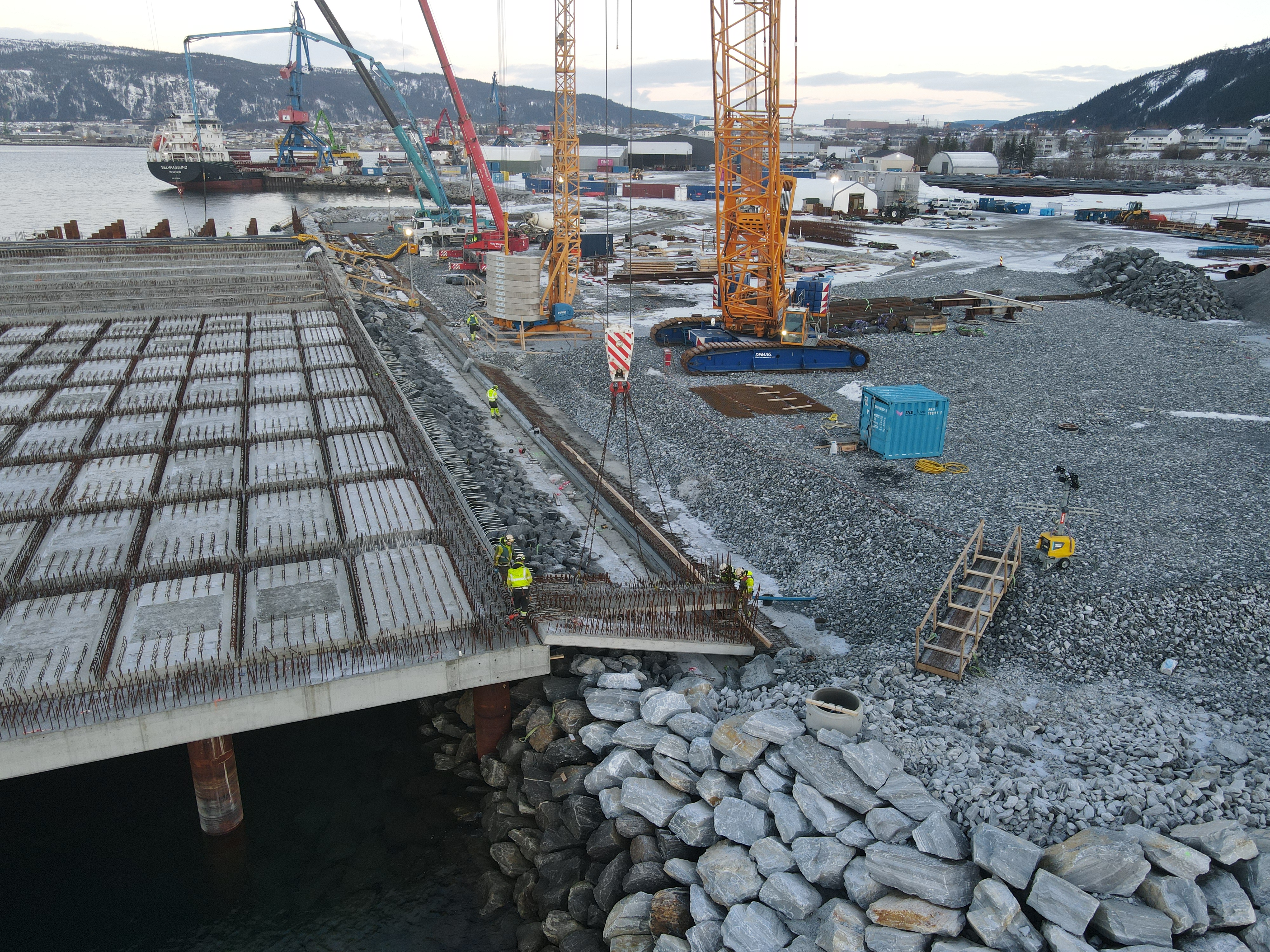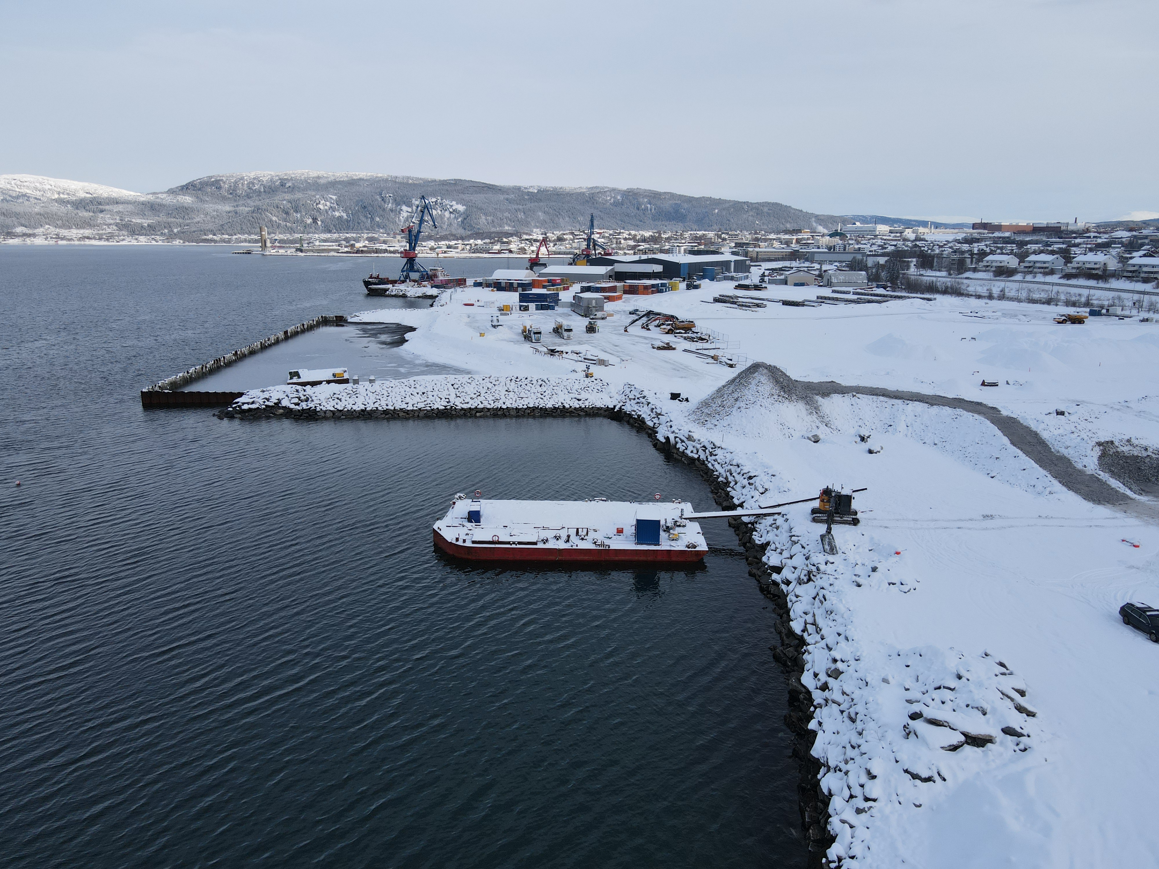 Etablering av ny dypvannskai på Langneset. Bilde fra februar, 2026.