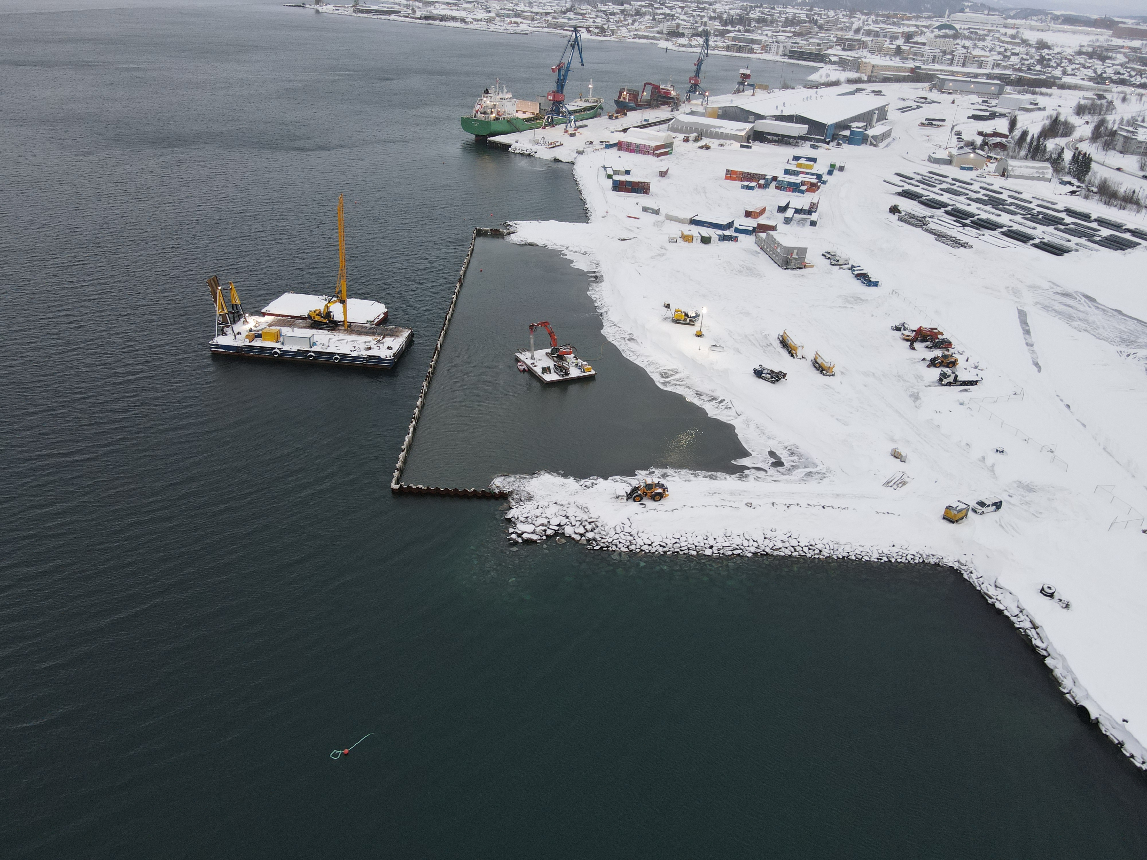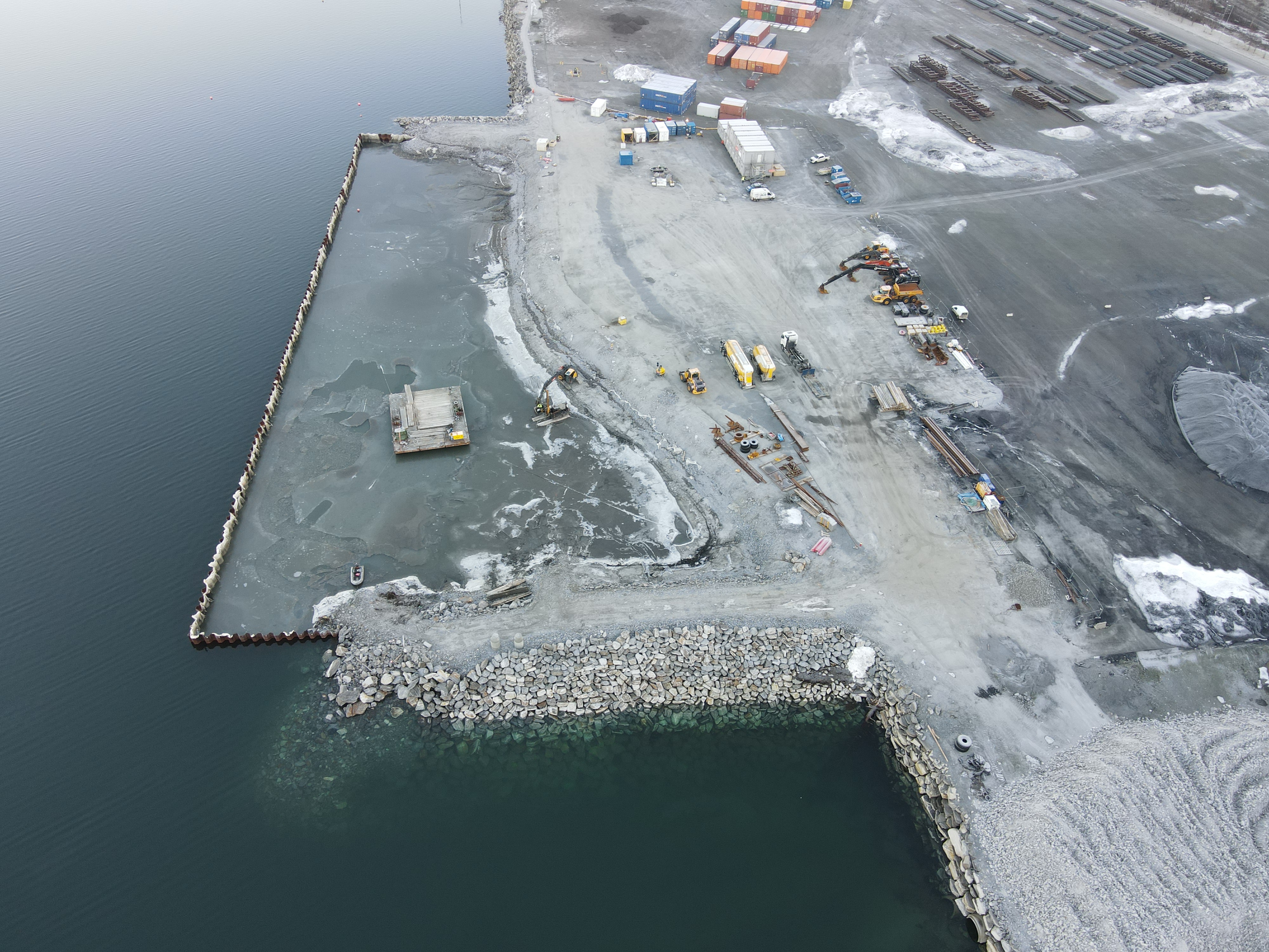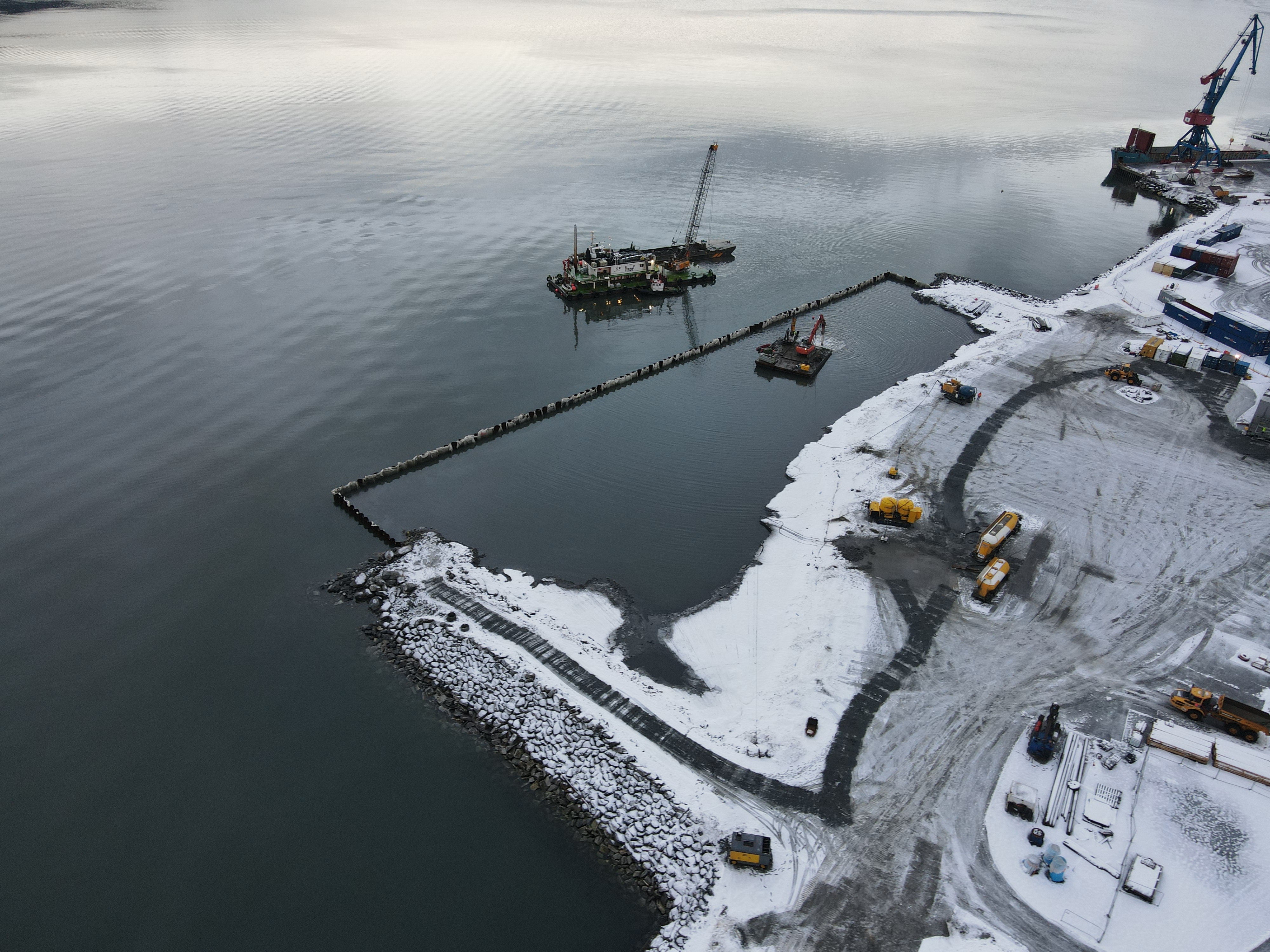 Etablering av ny dypvannskai på Langneset. Bilde fra desember, 2025.
