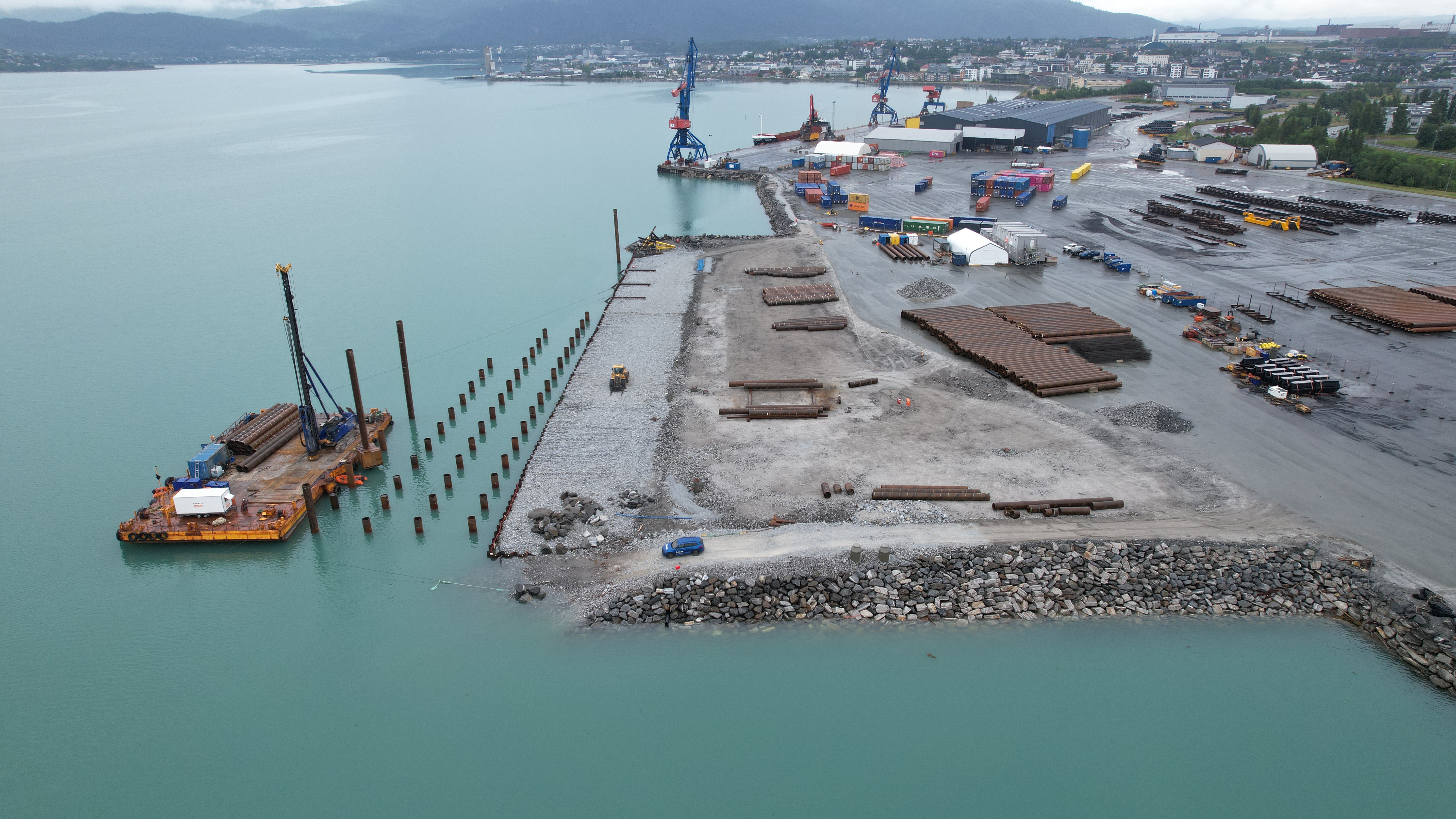 Etablering av ny dypvannskai på Langneset. Bilde fra juni, 2025.
