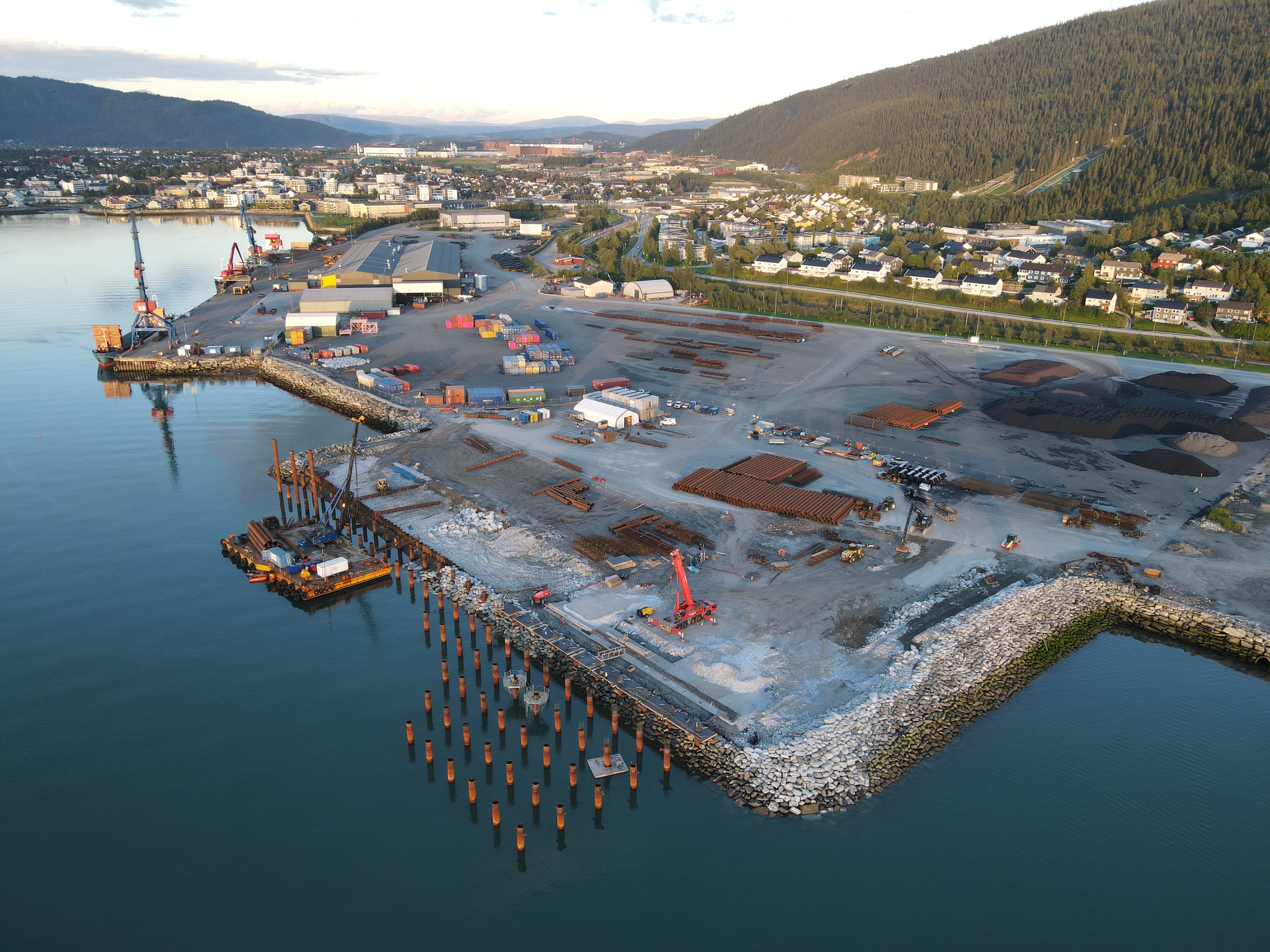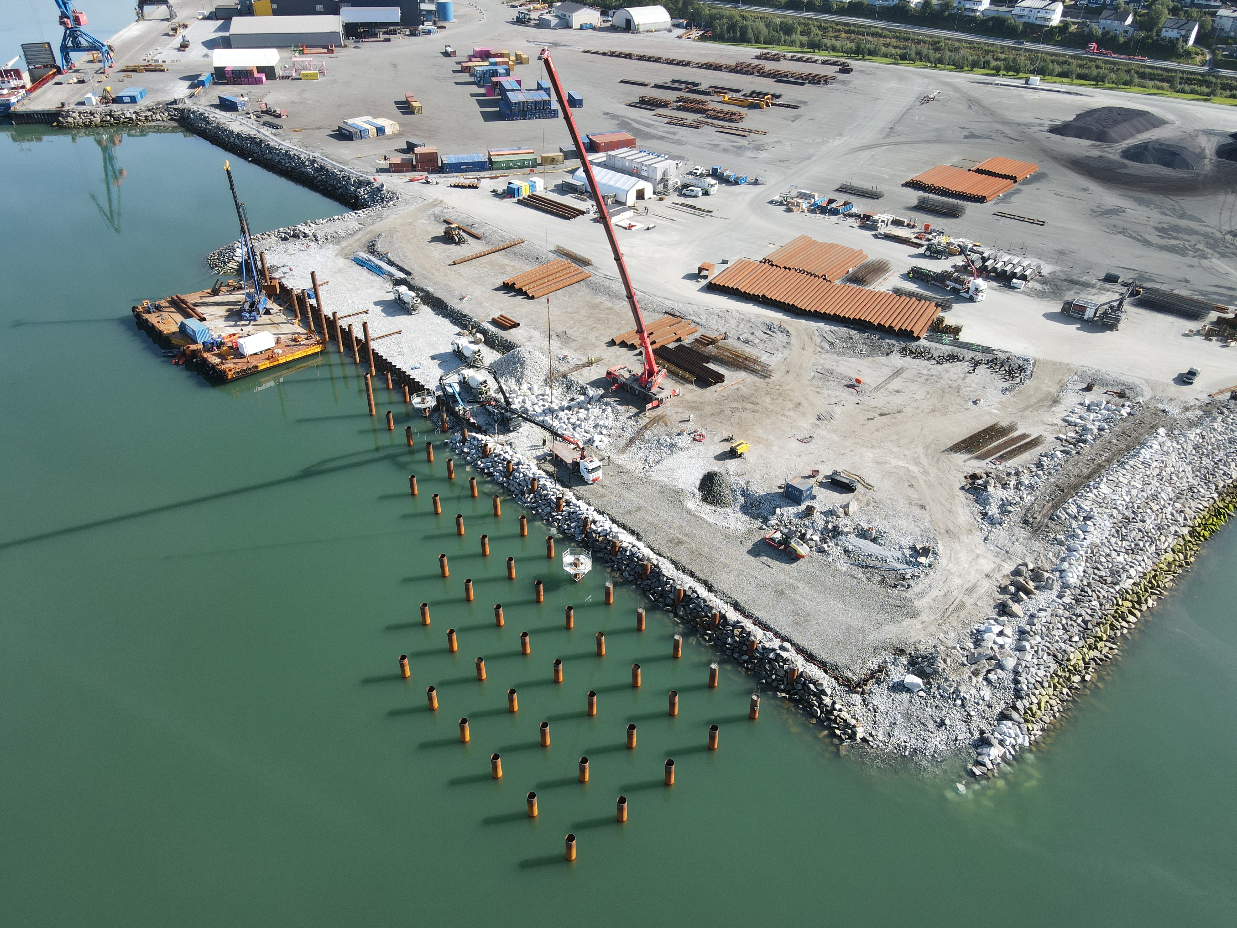 Etablering av ny dypvannskai på Langneset. Bilde fra juli, 2024.
