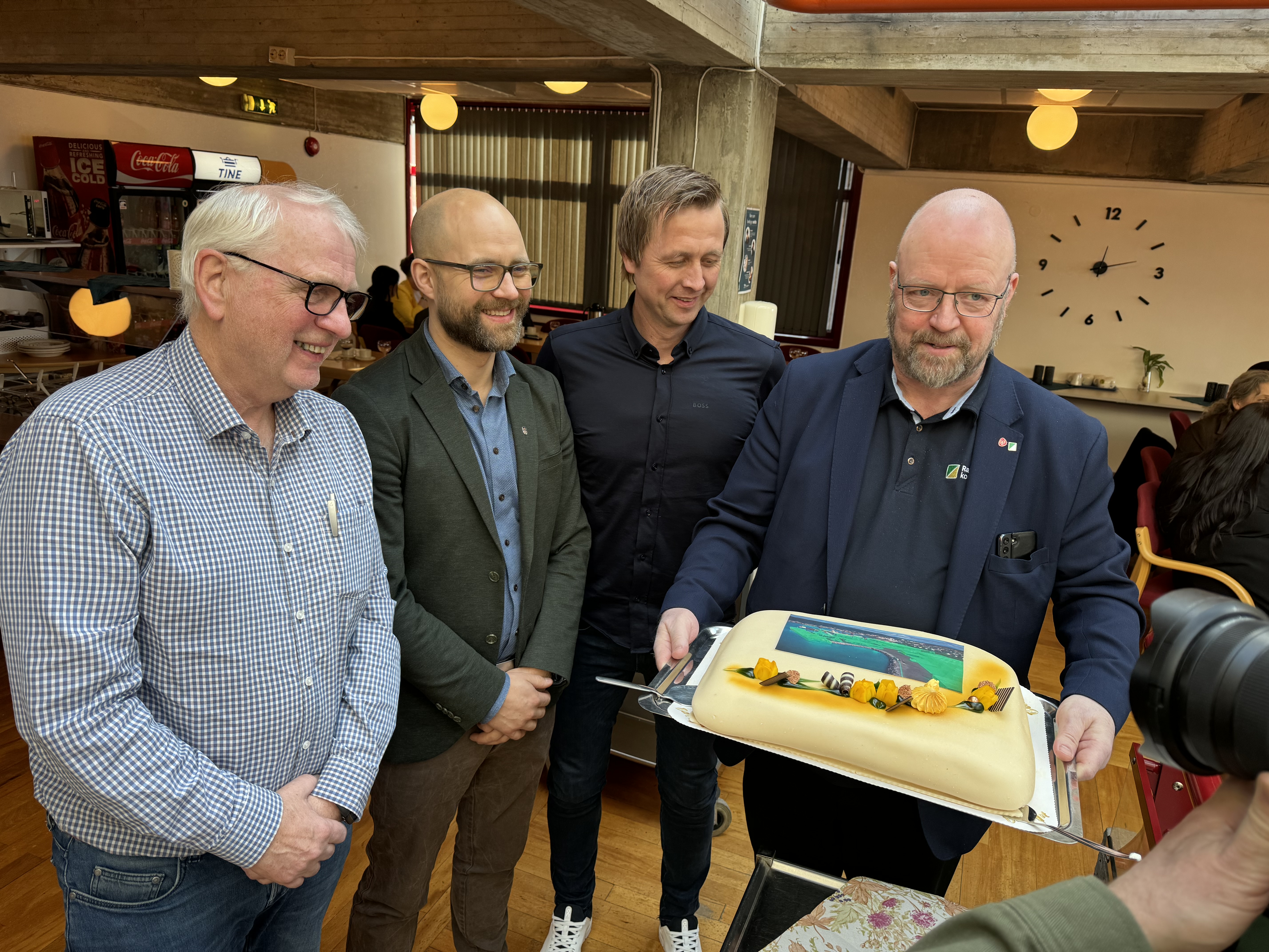 Kake i samband med signering av kontrakt, Vest Betong blir hovedentreprenør for Innseiling og dypvannskai Mo i Rana.
