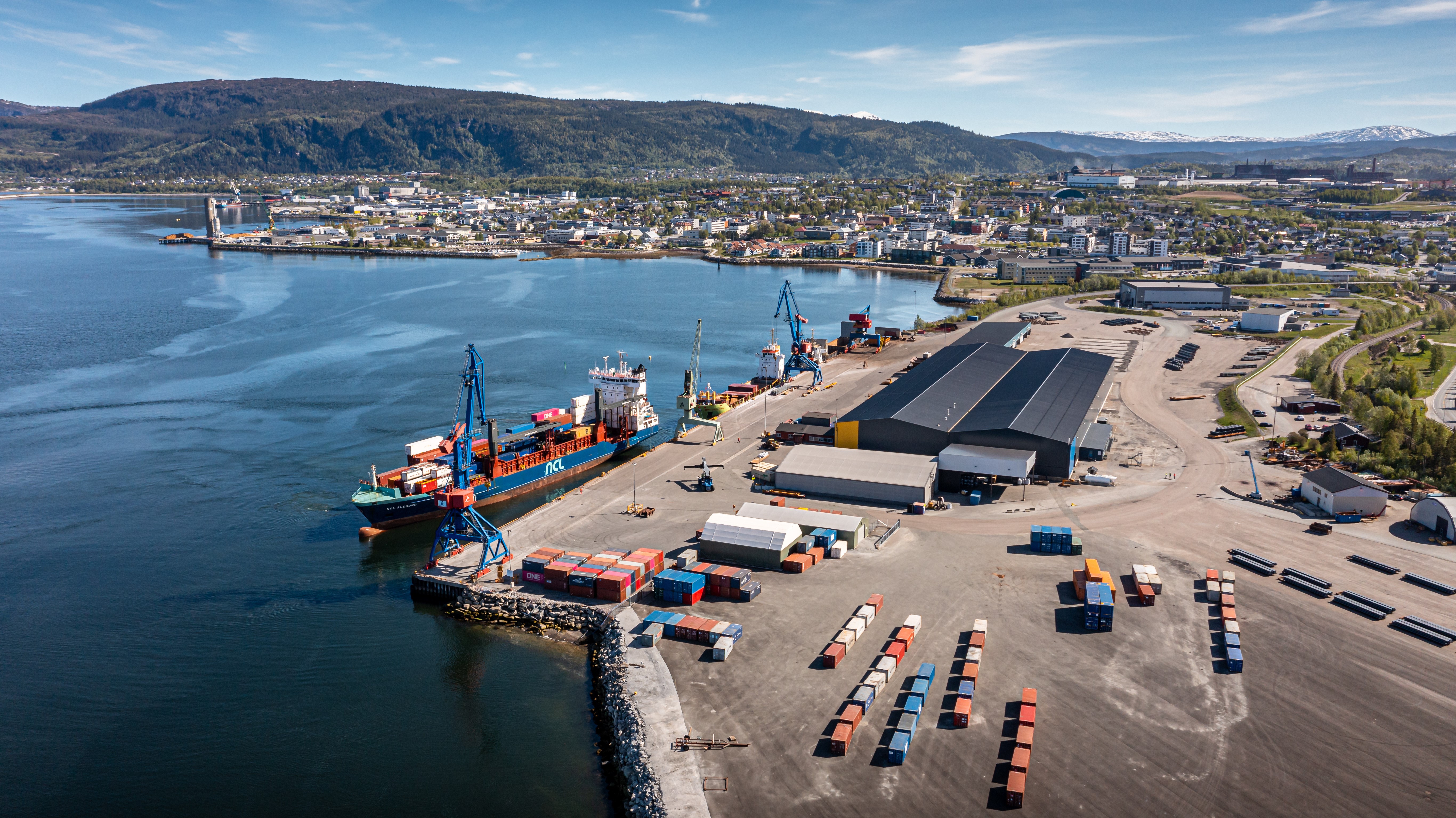 Industriterminalen fotografert fra sentrum, mot sør/sørvest.