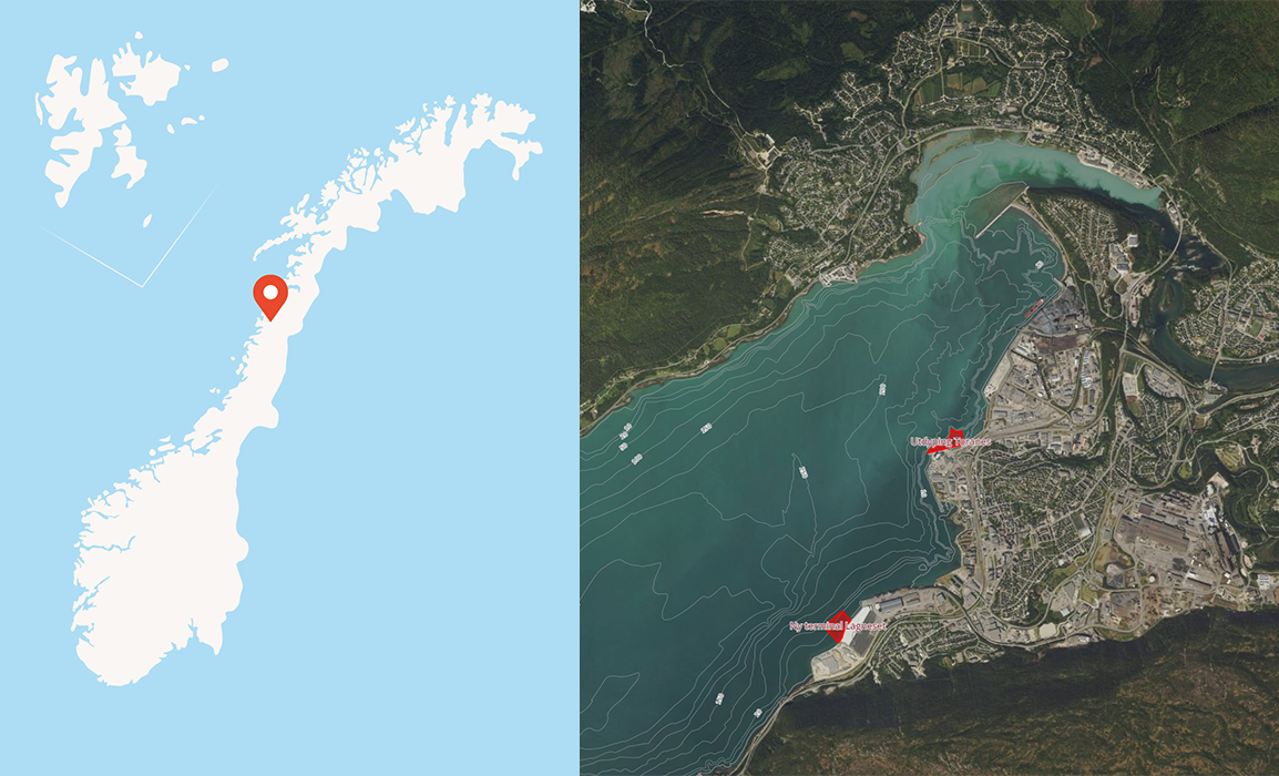 Rana industriterminal sett fra Havmannplassen.